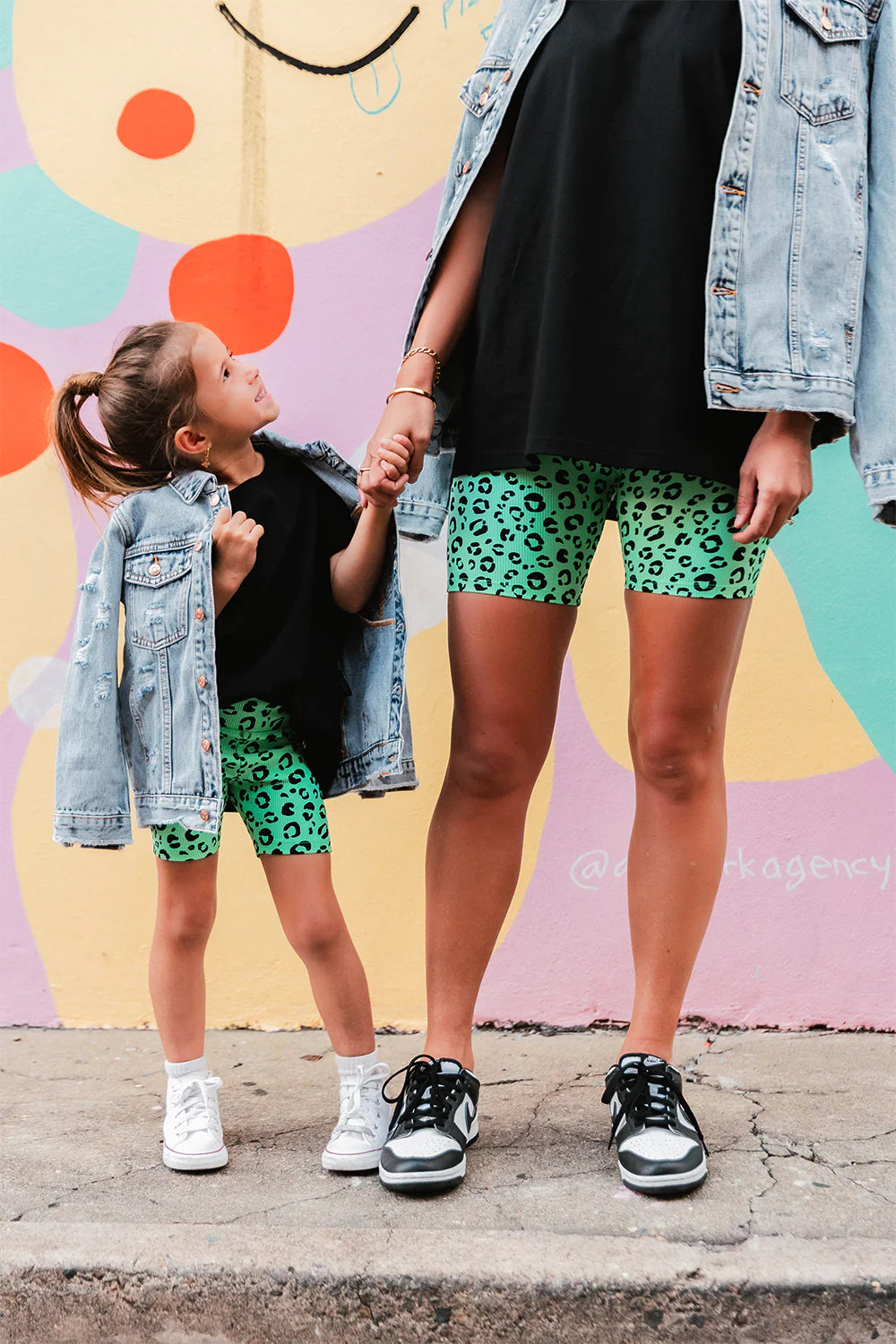 When you love something so much, why not own it in every colour-way?! WE AGREE! Which is why we've brought out our FAVE Signature Rib Bike Shorts in an all-new colour and print combo...introducing the Paradiso Leopard Rib Bike Shorts in the dreamiest electric mint green + black leopard print!