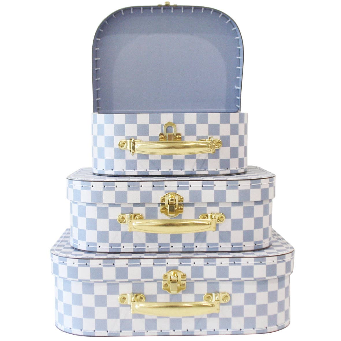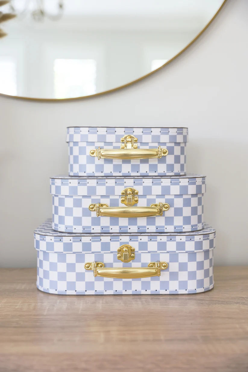 Discover the Alimrose Kids Carry Case Set Blue Check, a versatile and captivating solution for your child's storage needs. Designed to be light enough for little hands yet elegant enough for keepsake storage, this set comes with the added benefit of nesting style for convenient shipping and storage. Let's explore the outstanding features that make this set a must-have: