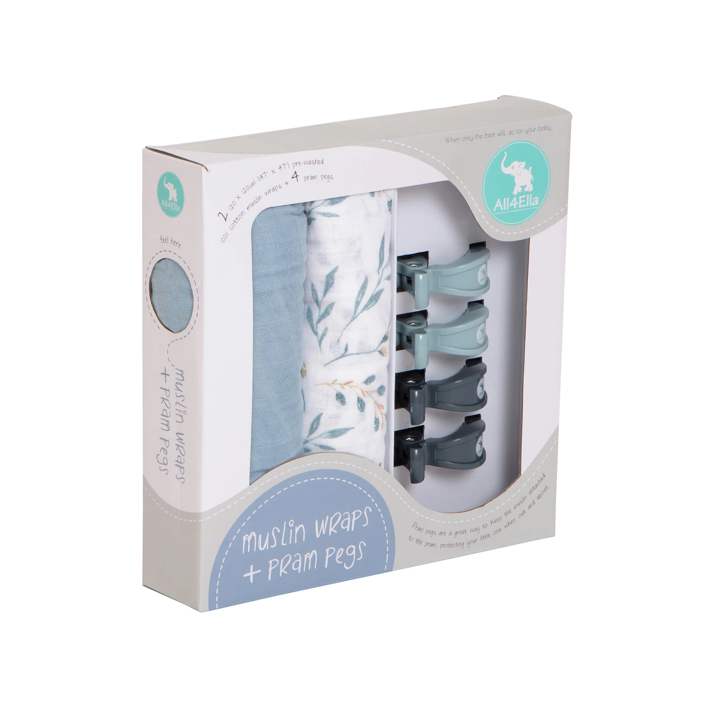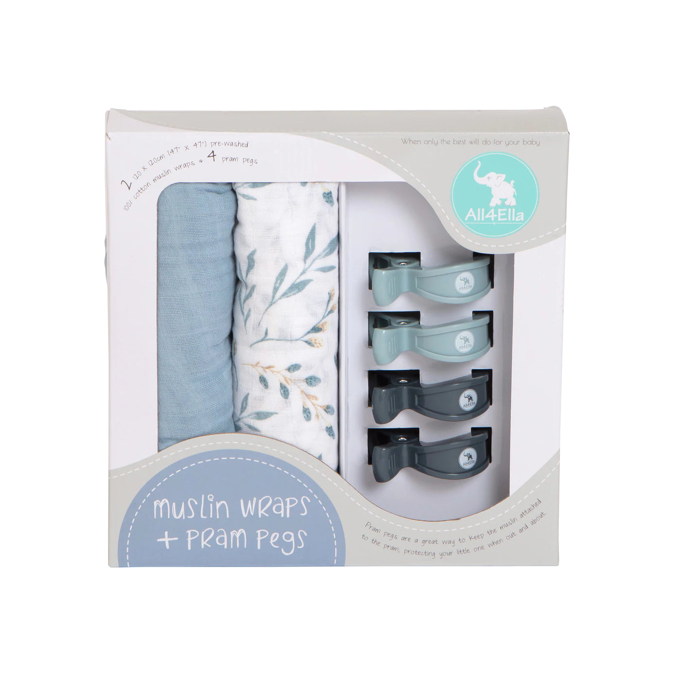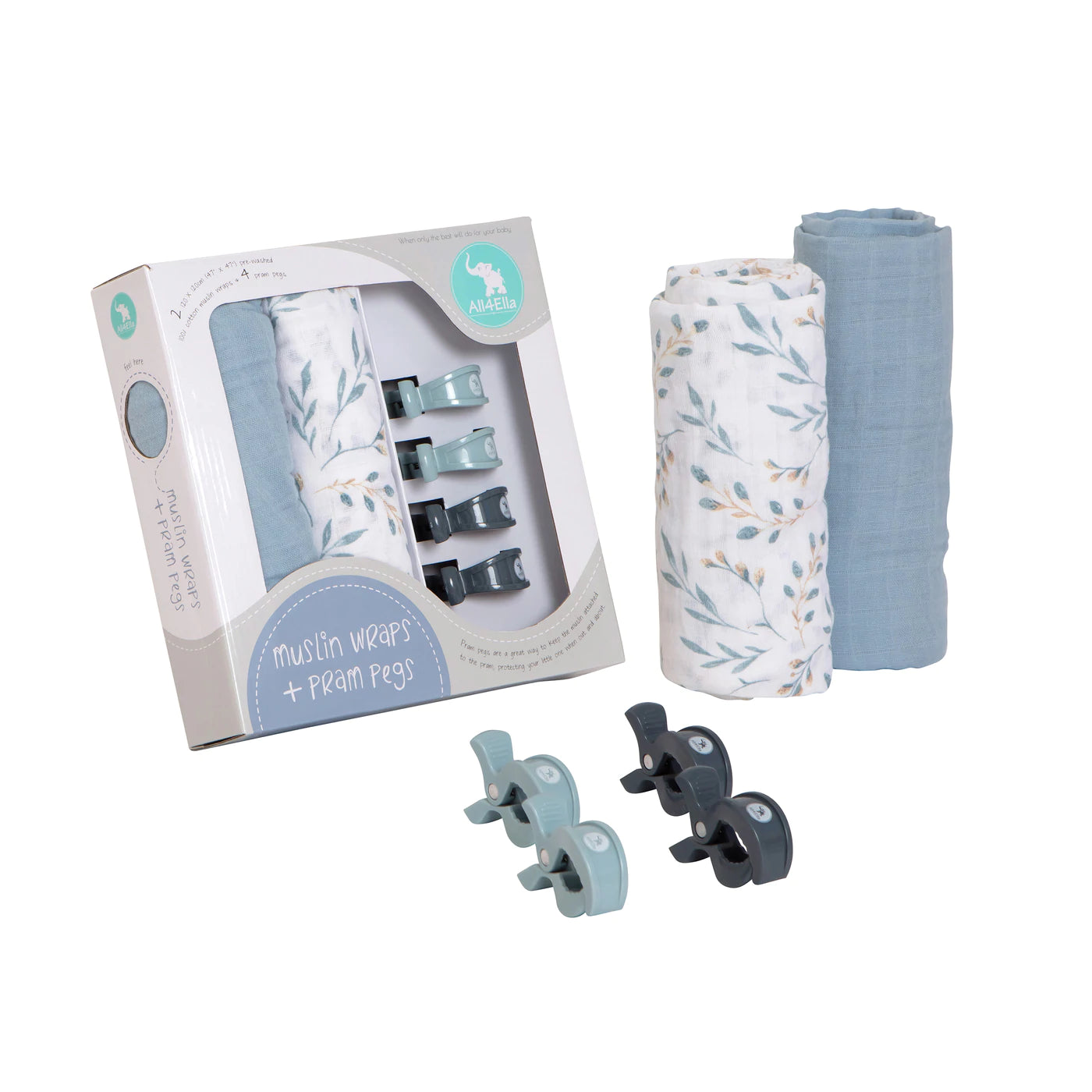 all4ella | 2 Pack Wraps & 4 Pegs - Willow Flowers & Light Blue