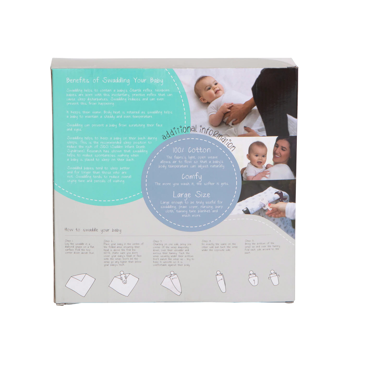 Comfy – Our fabric is designed to become softer each time it is washed. Our EXTRA Large Size 1.2 x 1.2 m. Each Swaddle is large enough to be used as a pram cover, burp cloth, tummy time blanket, nursing, and much more. Paired with Pram pegs, these are a great way to keep the muslin attached to the pram, protecting little one’s when out and about.