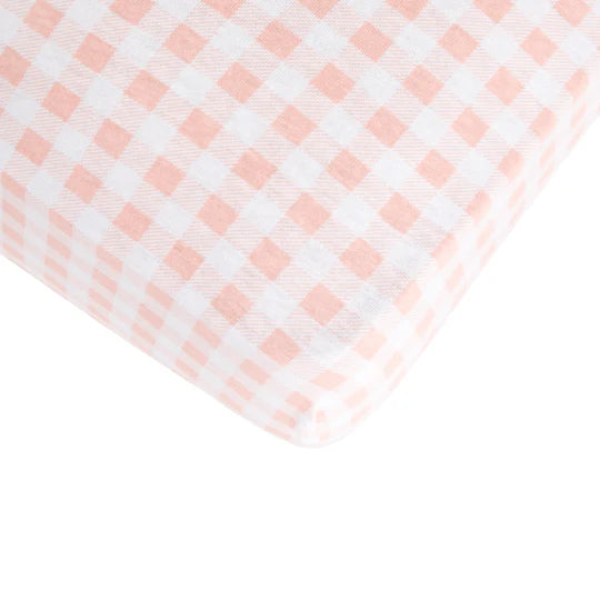 Organic Jersey Fitted Cot Sheet - Gingham Strawberry