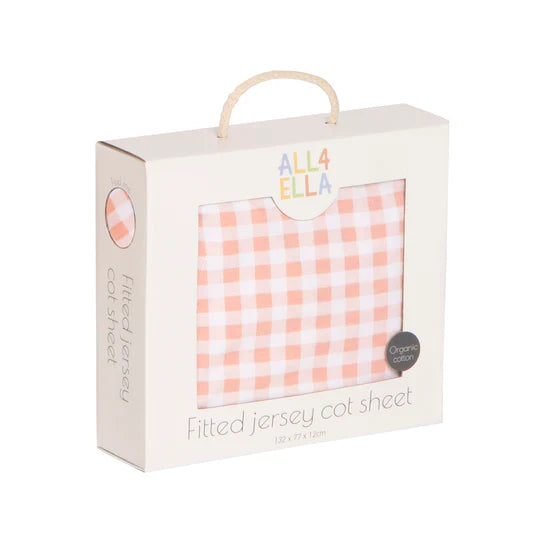 Indulge your little one in the gentle embrace of our Gingham Strawberry Jersey Fitted Cot Sheet.