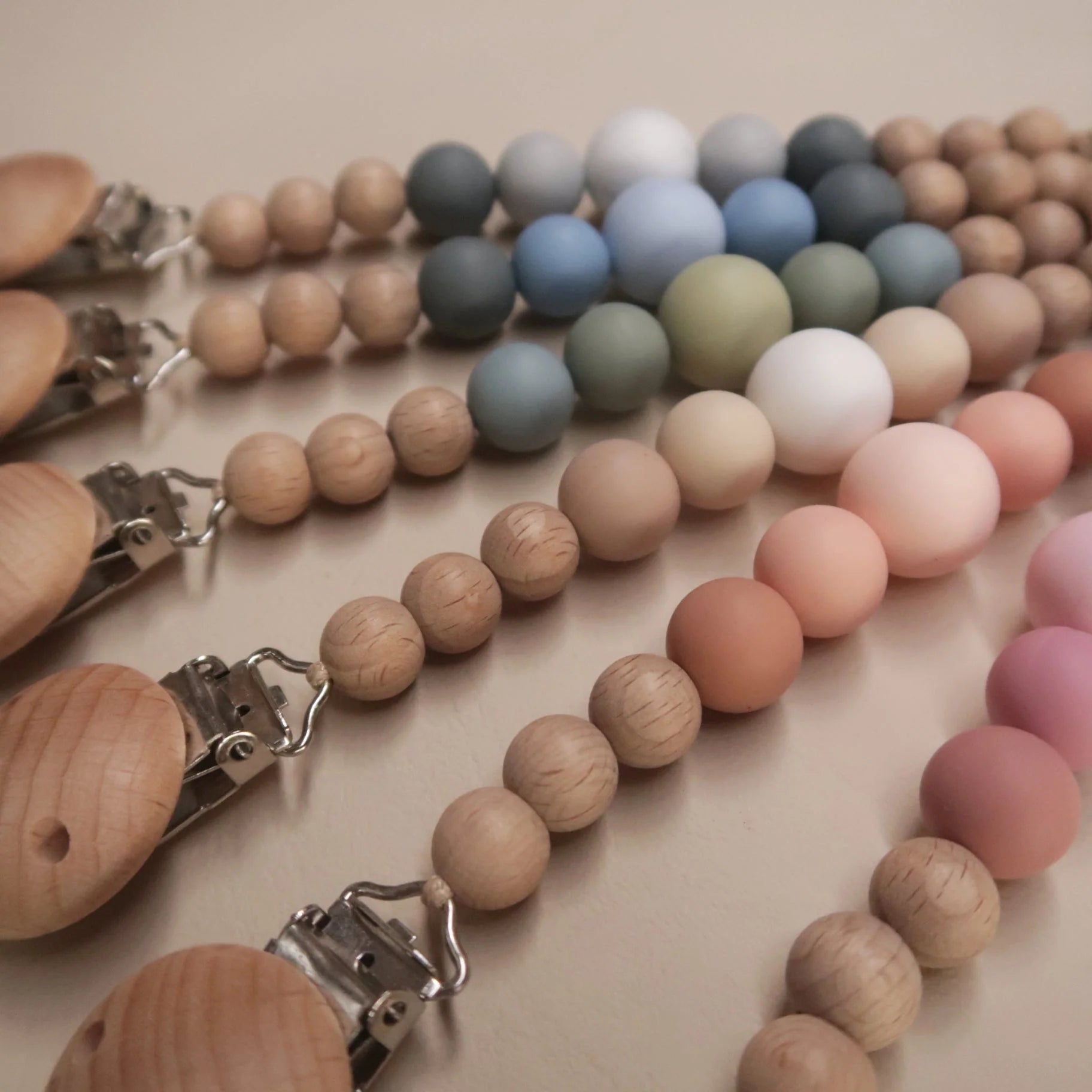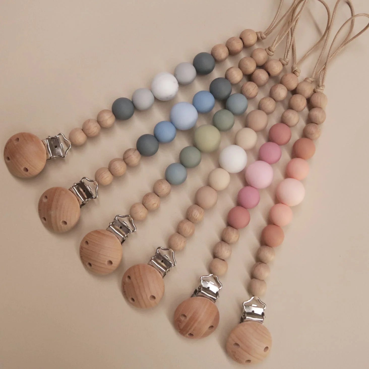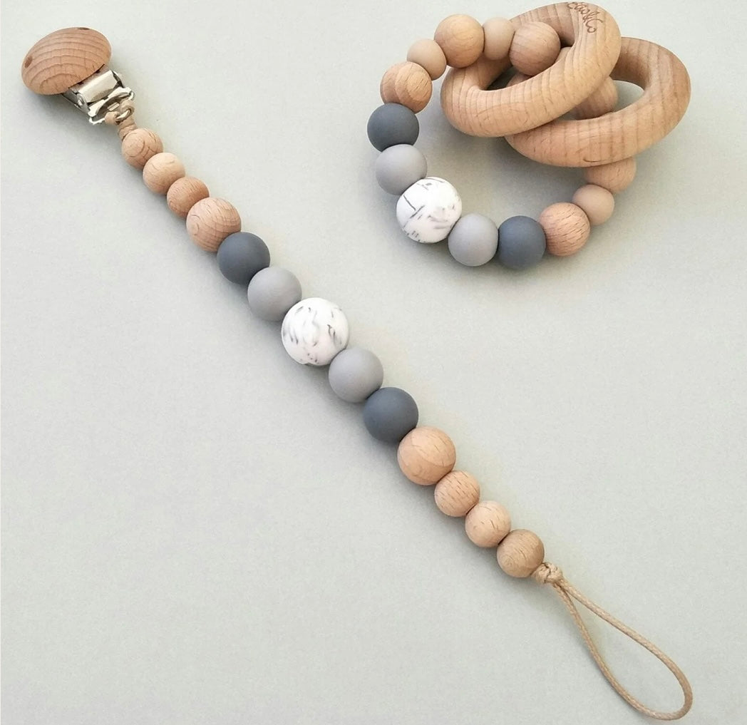 Our silicone and beechwood Charlie Dummy Clip is a best seller and makes the perfect baby shower or newborn gift.