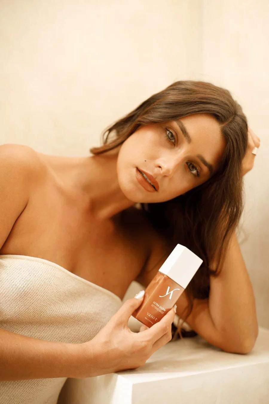 TIP: To intensify eyeshadow or highlighter, lightly spritz your VANI-T makeup brush before applying.