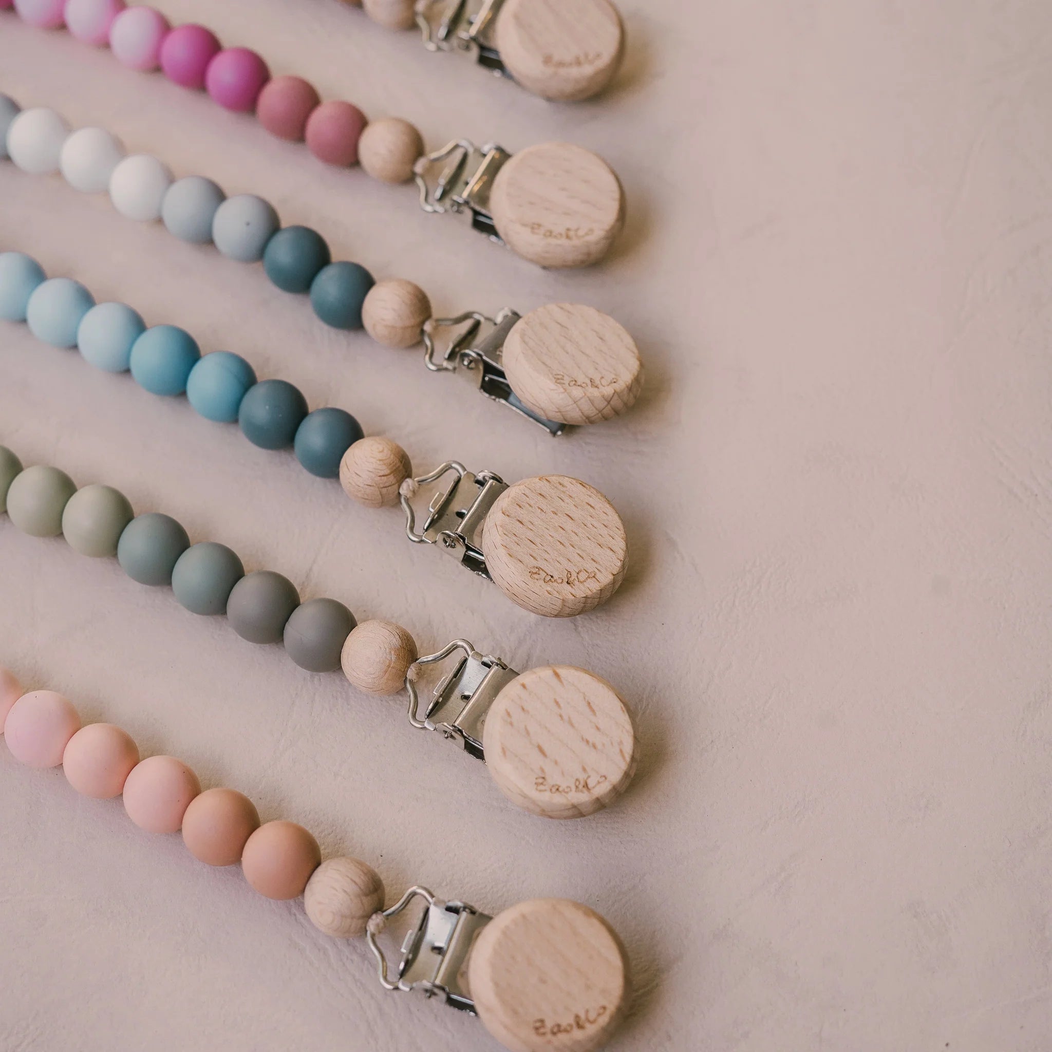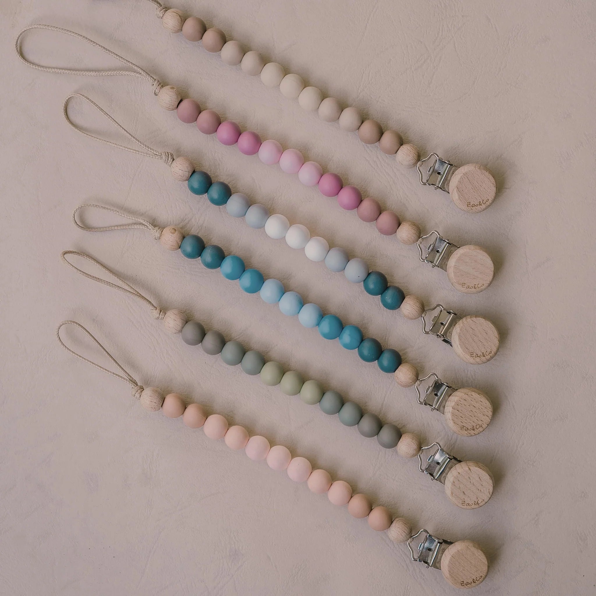 Zao&co’s dummy clips are assembled according to the Australian and European Competition and Consumer Commission recommended standard: EN 12586:2007 + A1:2011 Child use and care articles – soother holder. They are designed to be no longer than 22cm in length.