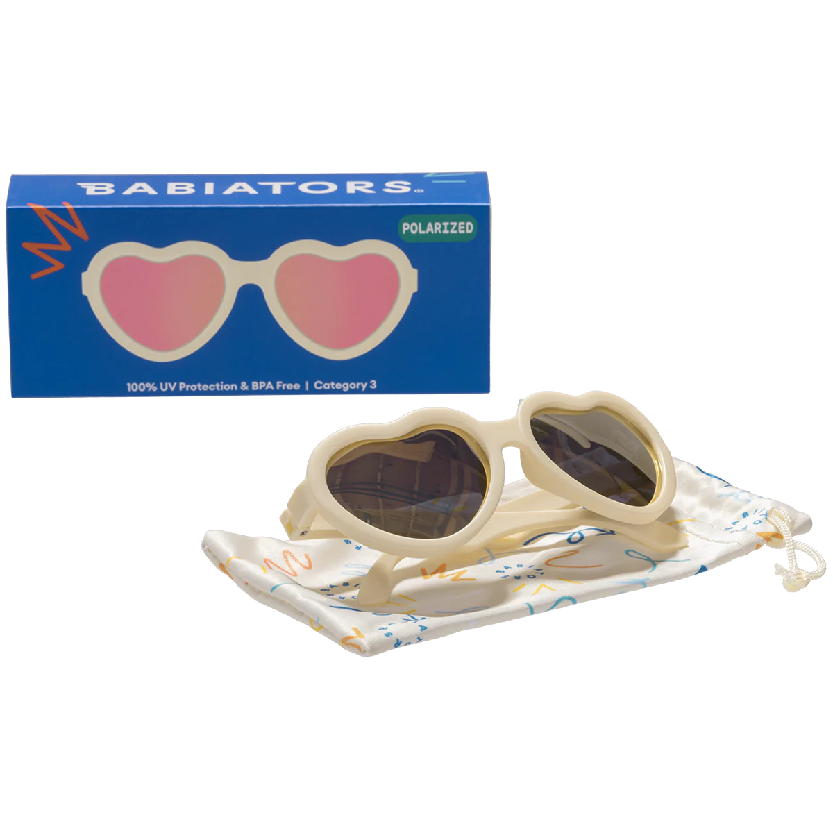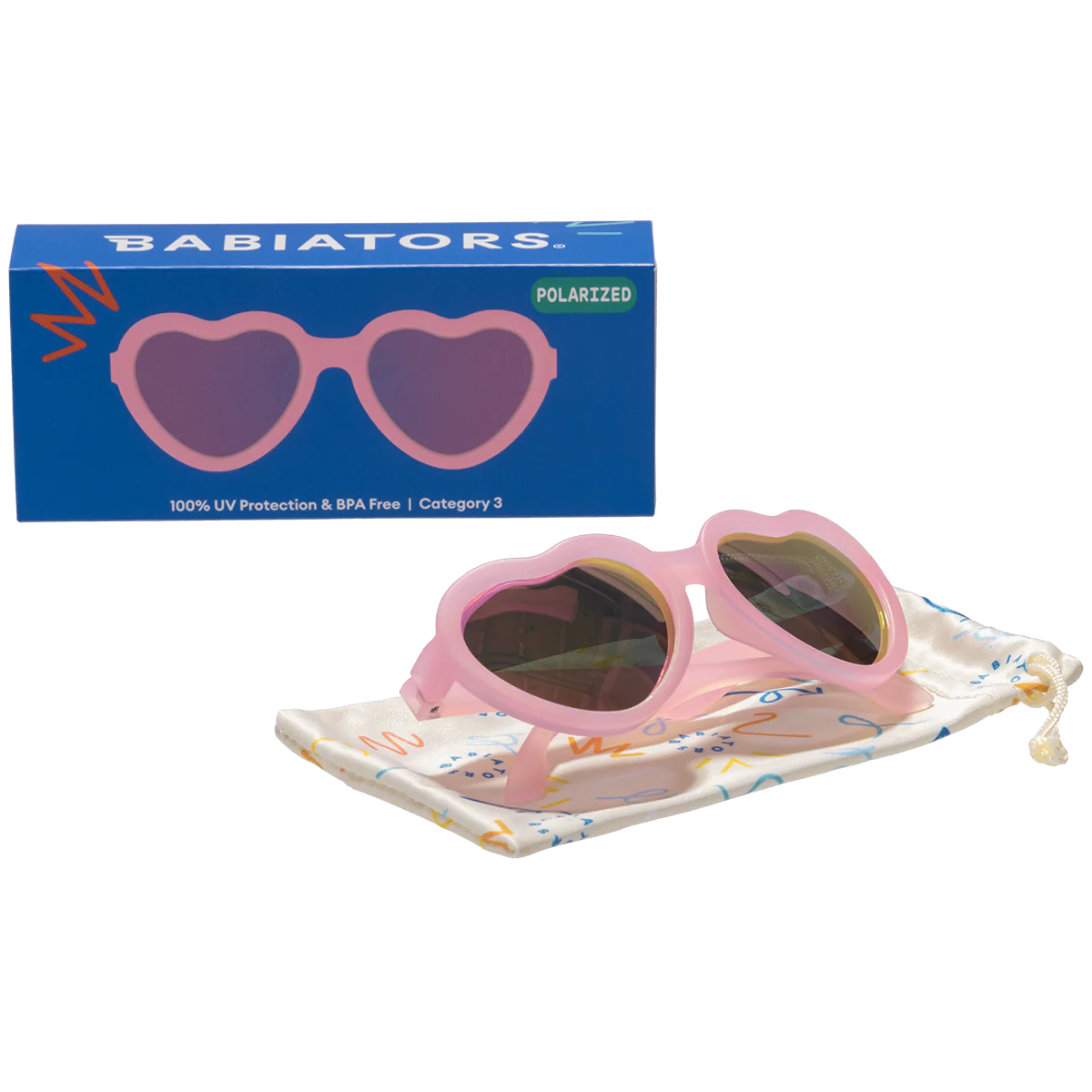 Celeb-level style with a sneaky dose of UV protection? Consider your kid influenced by these heart-shaped polarized sunnies! Babiators award-winning sunglasses for children protect against 100% of UV rays (and boring style) and are virtually indestructible. Our Polarised Babiators heart frames come in three sizes that fit babies, toddlers, and kids aged 3 months to 6+ years.