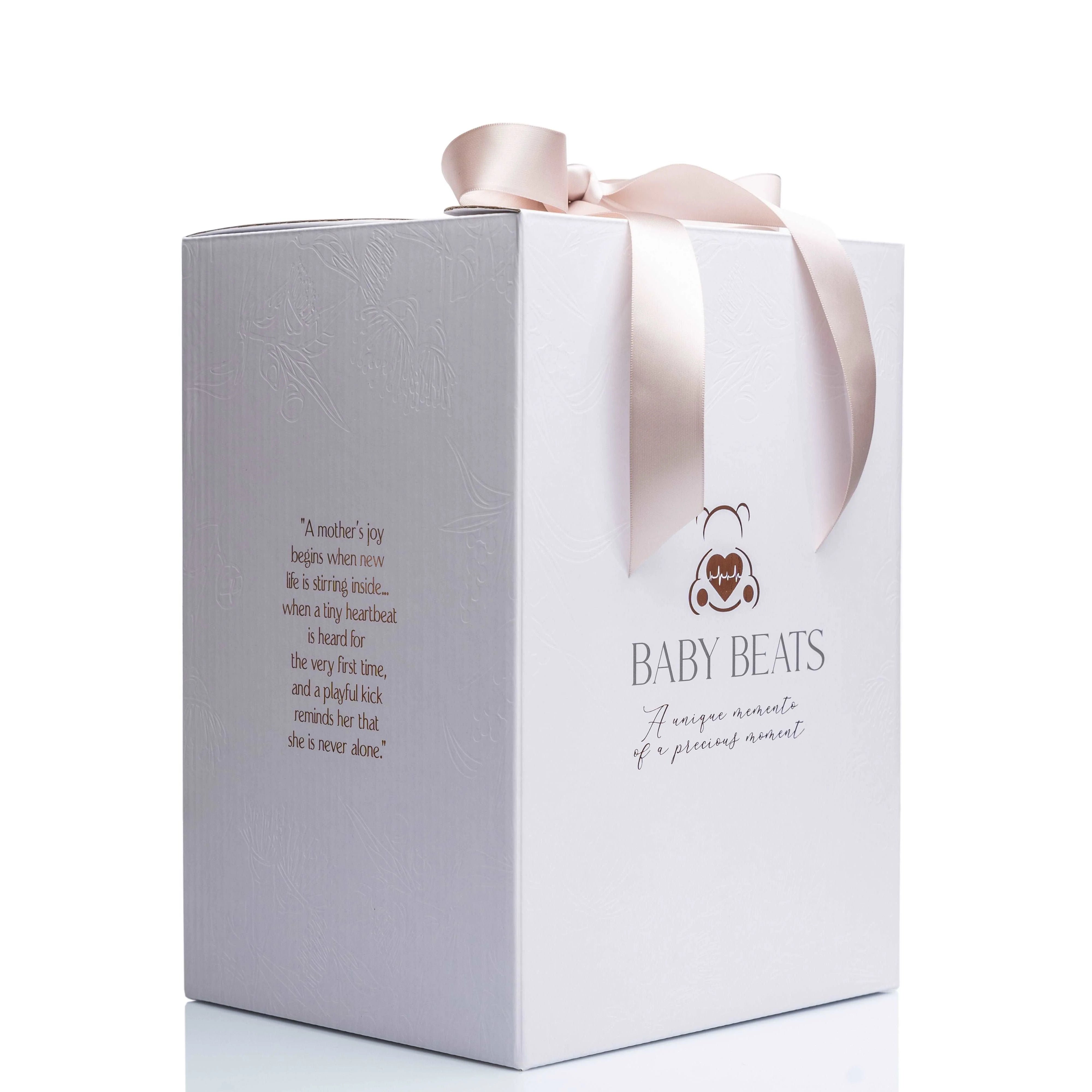 Our Heartbeat animals all come with our exclusive Baby Beats Red Heart Recording Module. With a recording duration time of 20 seconds, the recording module allows you to capture your baby’s heartbeat while still in utero.