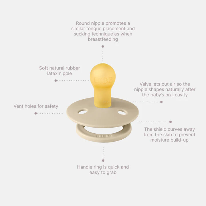 The round nipple resembles the shape and size of the mother’s soft nipple and promotes a similar tongue placement and sucking technique as when breastfeeding since the round shape allows the sides of the tongue to elevate and cup around the nipple.