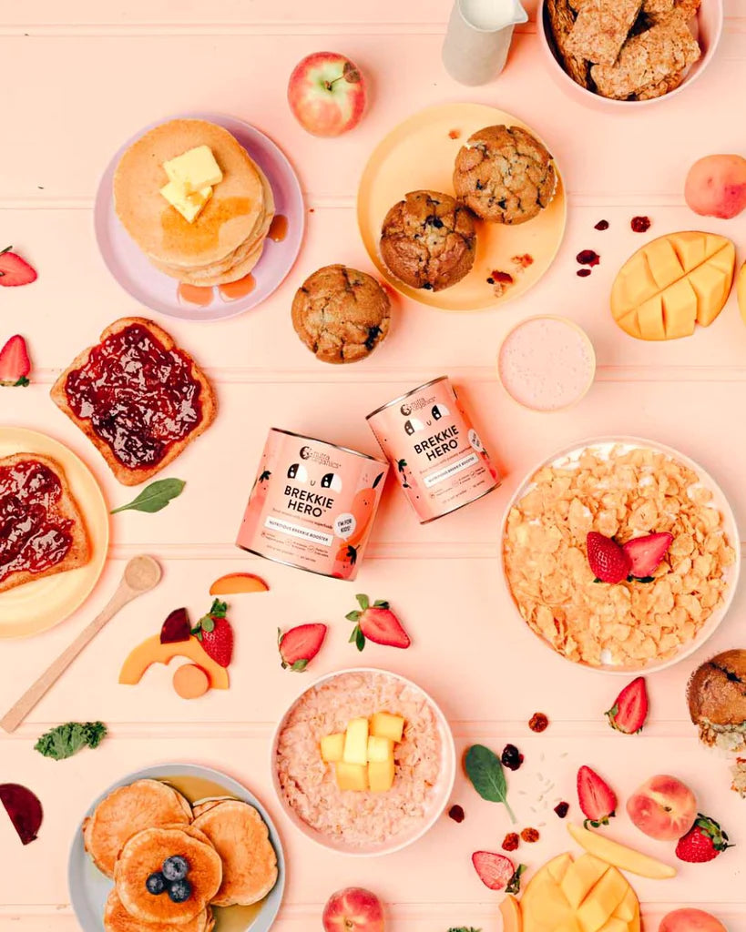 Struggling to get enough fruits and veggies into your fussy eater? Enter Brekkie Hero! A heroic blend of 14 fruits and veggies designed for kids’ taste buds and parents’ peace of mind that easily boosts breakfast.