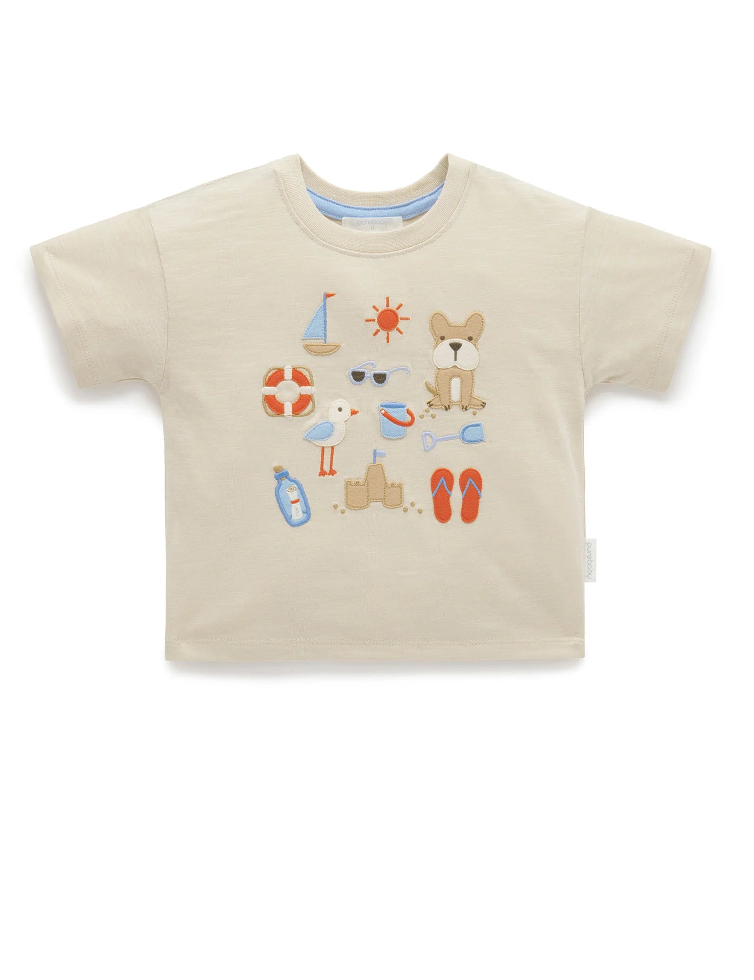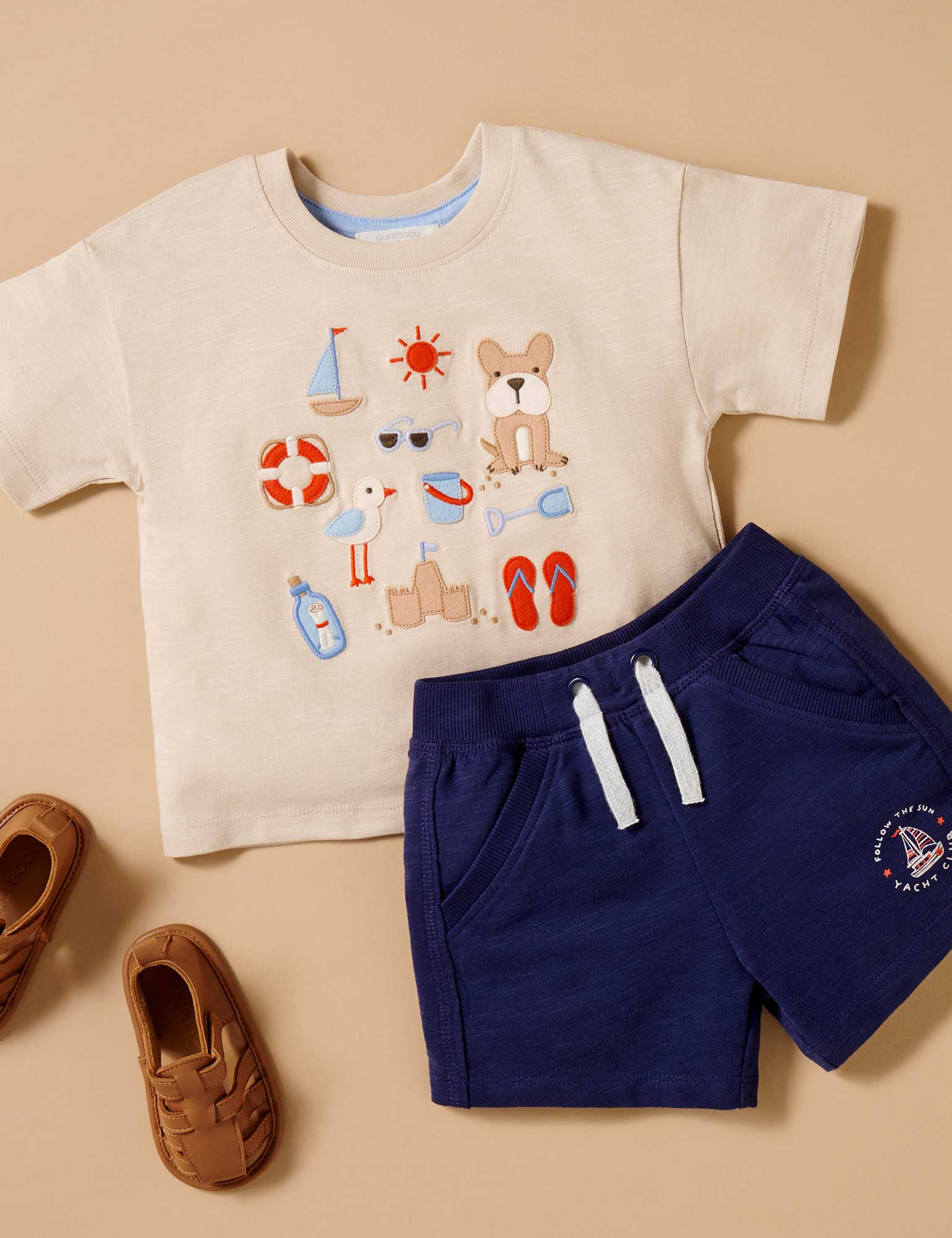 Our On The Beach Tee is a fun summer style, featuring an applique of beach inspired motifs on the chest! Made from our 100% Organic Cotton jersey with a subtle slub, for a soft and gentle touch against their skin. Looks great paired with our Casual Shorts.