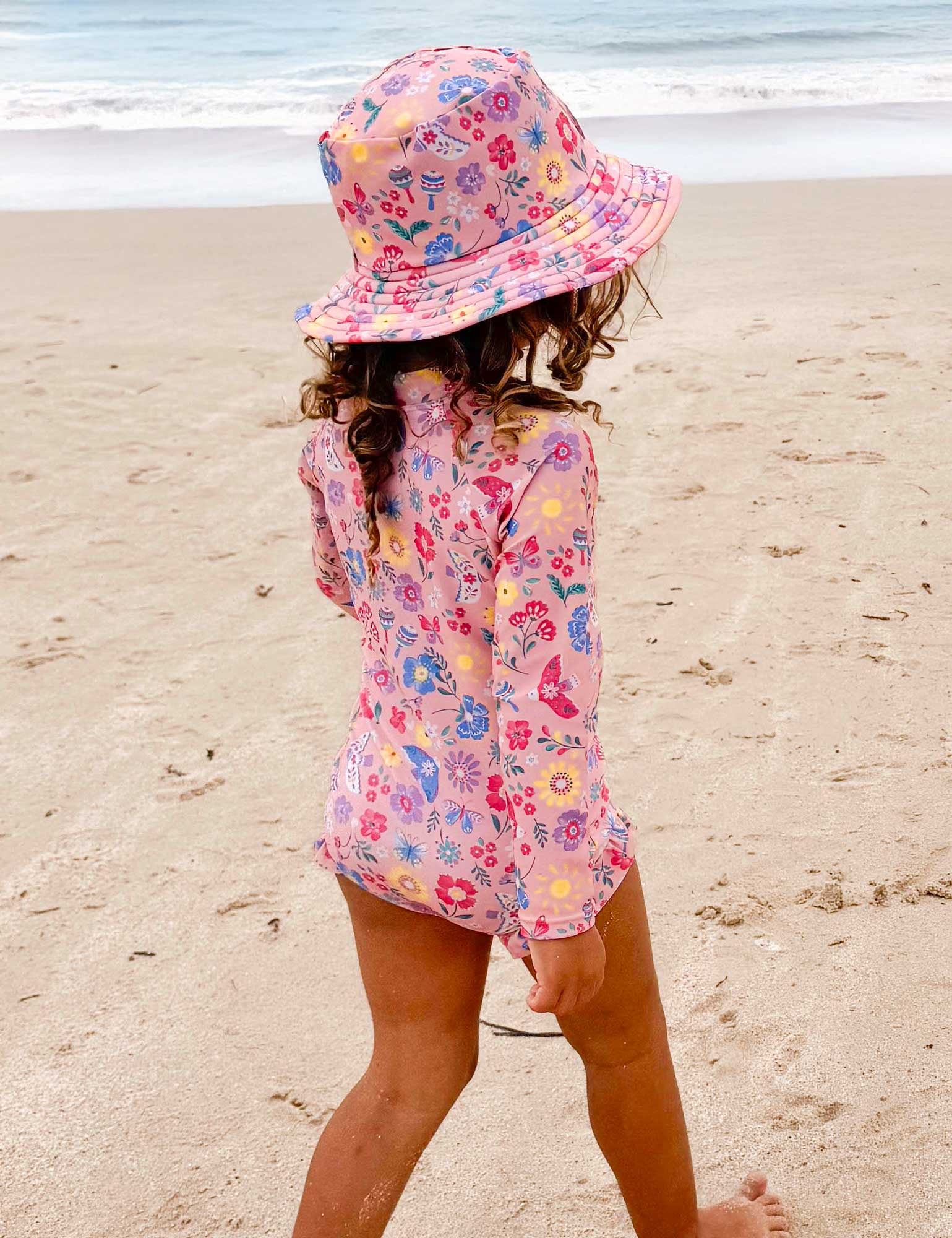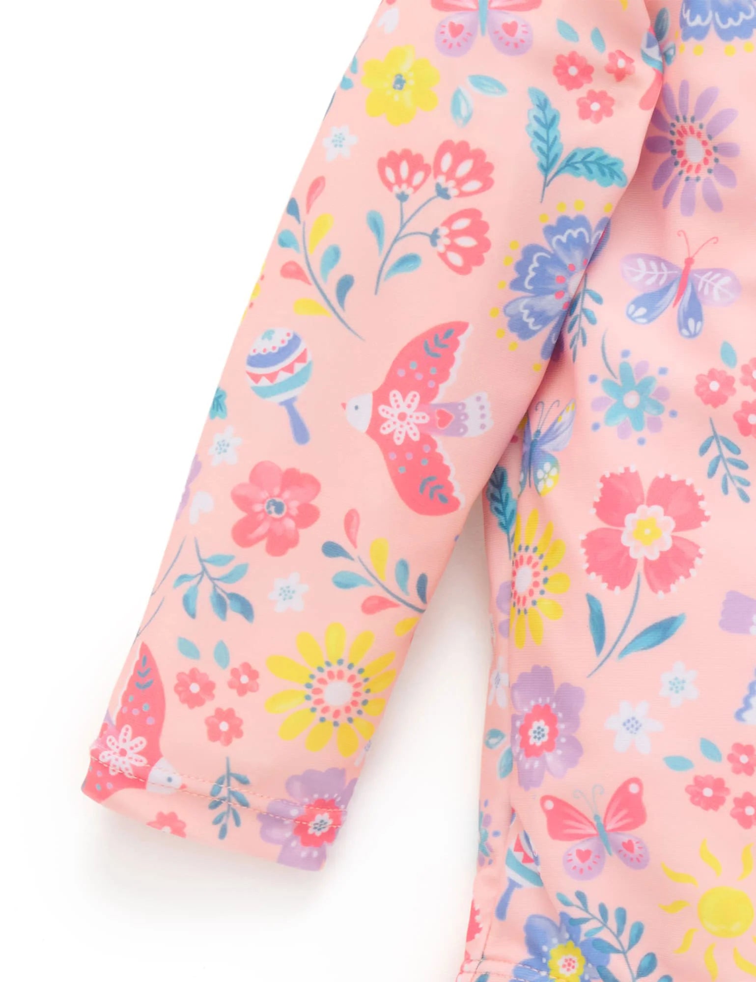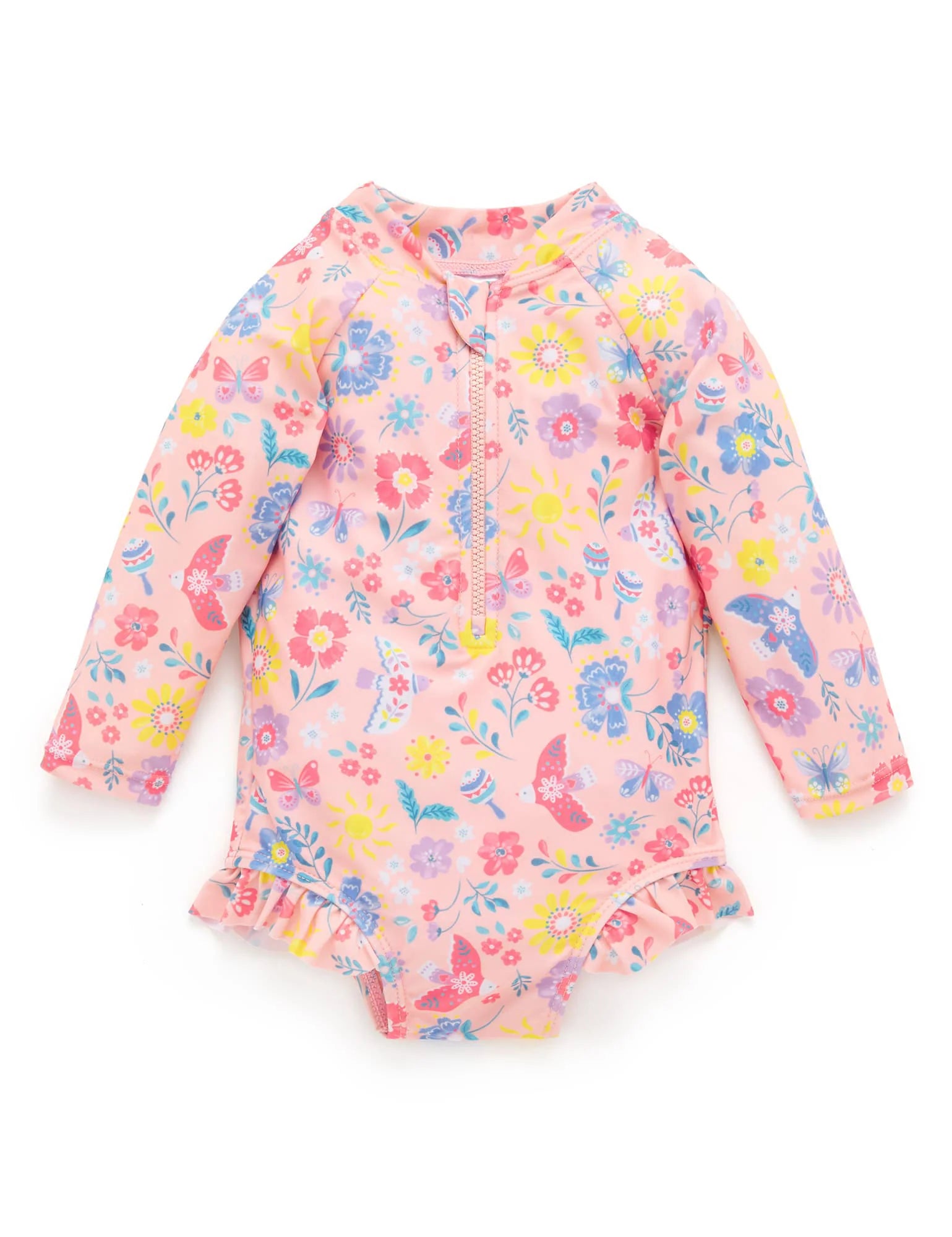 Our classic Long Sleeve Swimsuit is perfect for those long days at the beach or by the pool. Featuring a front zip with safety fold for easy dressing, ruffle trimmings and a sweet all over print. Made from a recycled polyester and elastane blend for a lightweight and breathable suit.