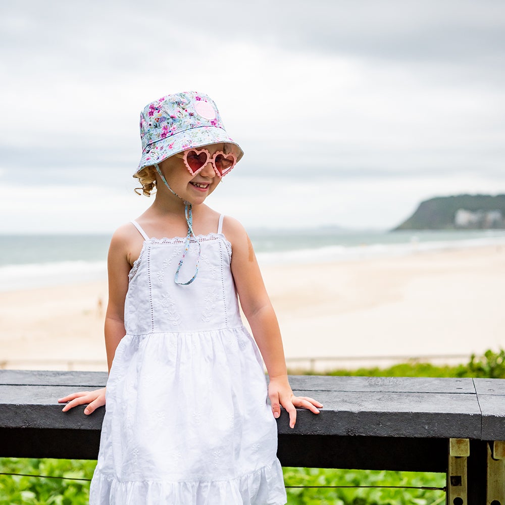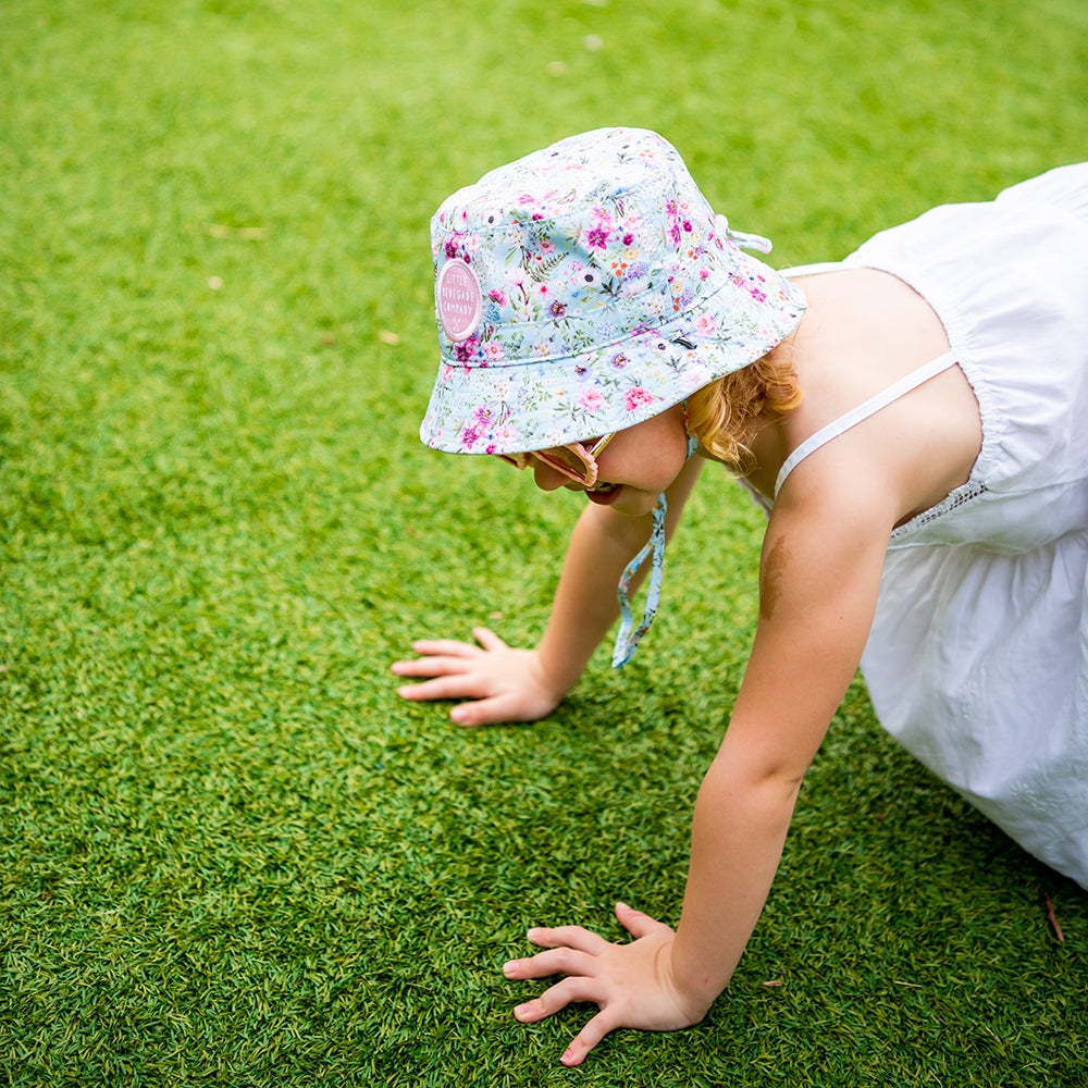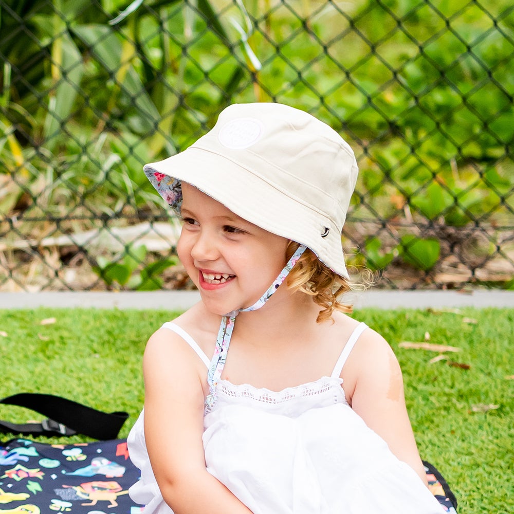 Our beautiful Meadow Reversible Bucket Hat is one of our awesome bucket hats with lots of features! This bucket hat is reversible, adjustable in size and has a detachable chin strap.