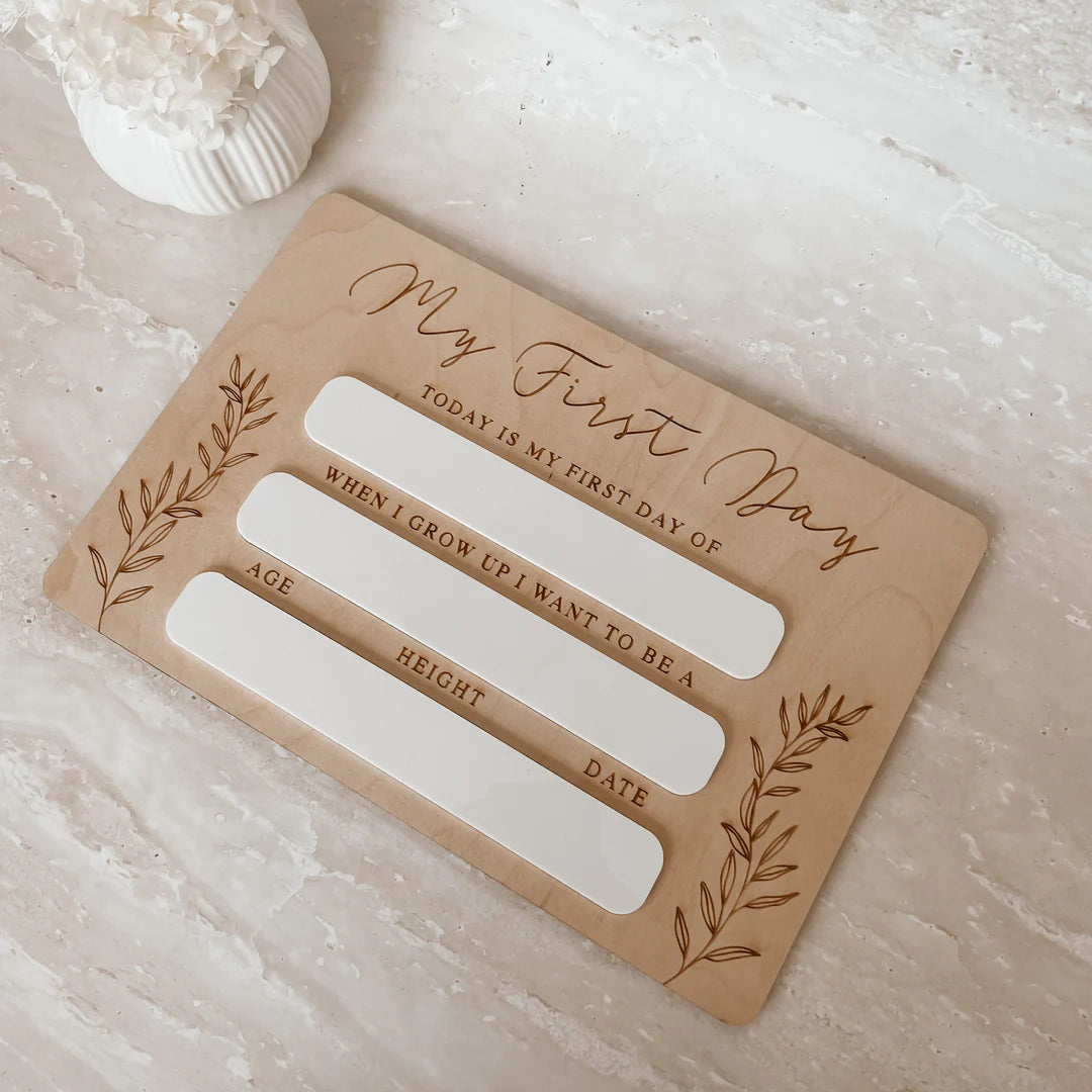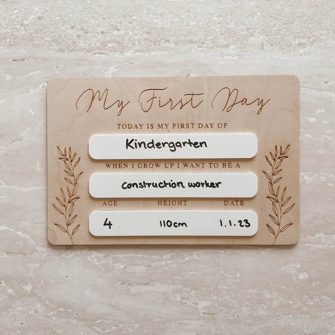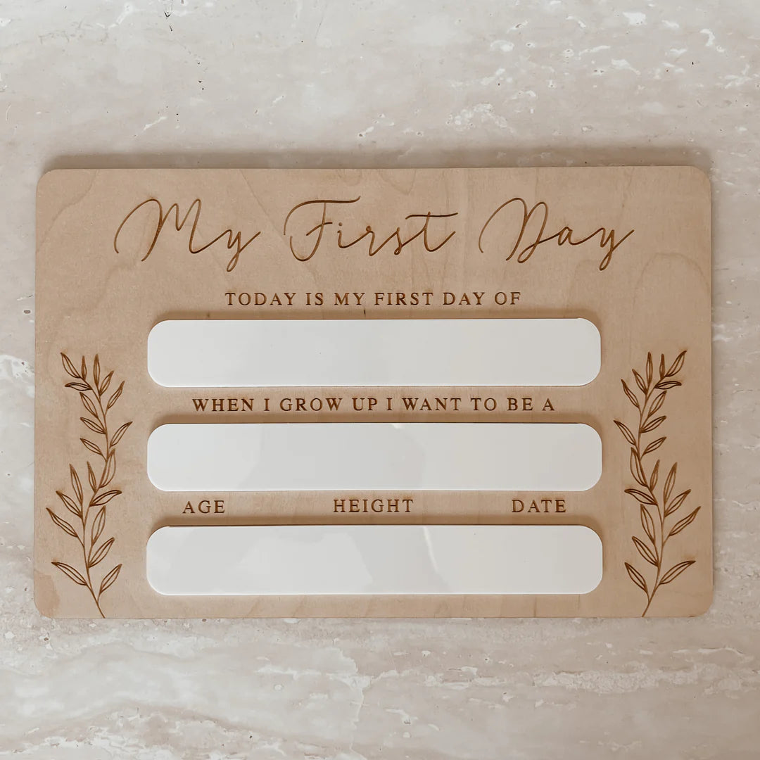 Our My First Day Board is the perfect way to capture your little loves memories from daycare all the way through their school years. The best part? It can be re-used year after year, for all of your little loves as they grow.