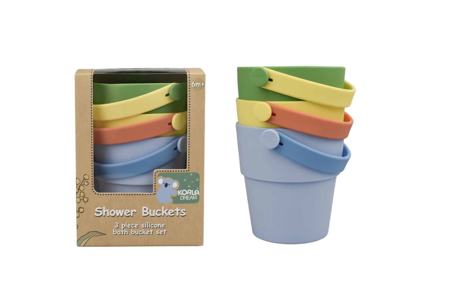 Explore water play with the Silicone Shower Buckets 3pc Set from Koala Dream, featuring colourful mini buckets, perfect for beach, pool, or bath time fun, crafted from safe and durable silicone.