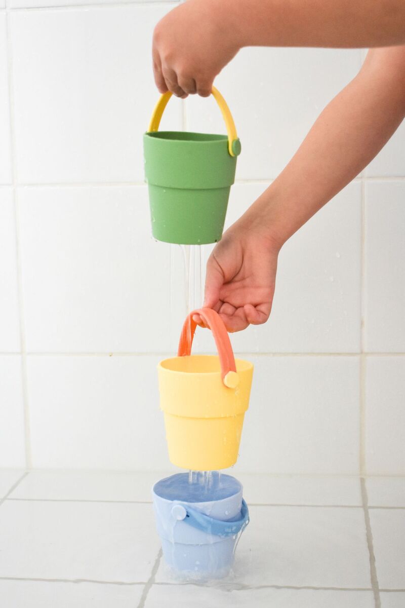 Experience worry-free play and endless fun with the Silicone Shower Buckets 3pc Set, designed to spark creativity and imagination during water play activities for children.