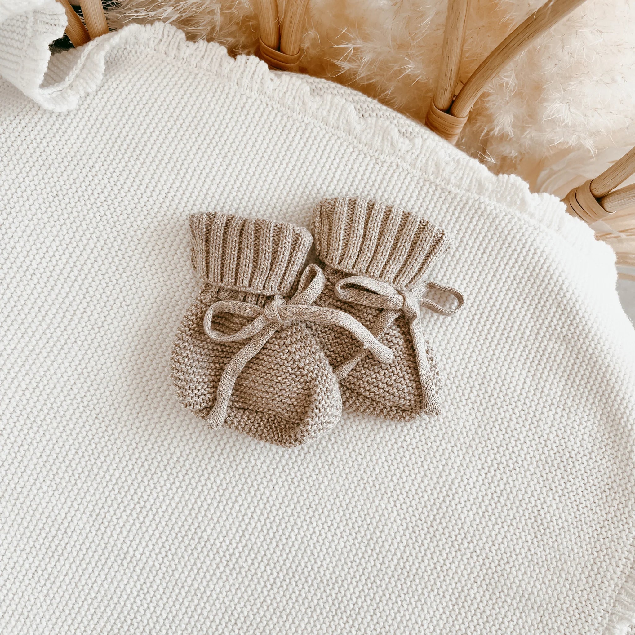 Our timeless knit booties are the perfect wardrobe addition for your little love. Available in five classic colours and suitable for newborn to 6 months.