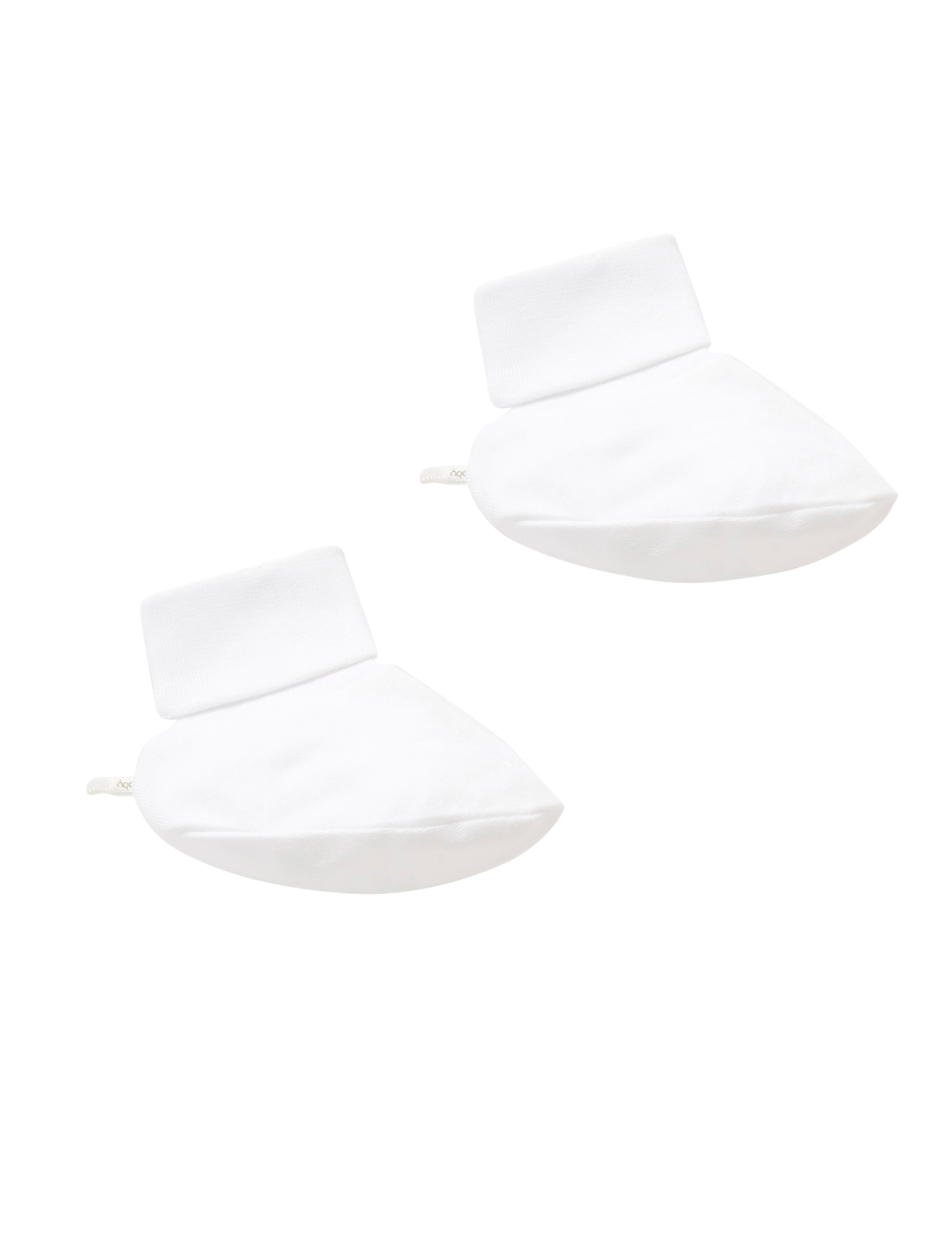 Purebaby certified organic cotton booties are designed with a wide fold over cuff to keep booties in place. They can also be worn over growsuits for additional warmth. Booties are available in one size suiting (0000-000) .