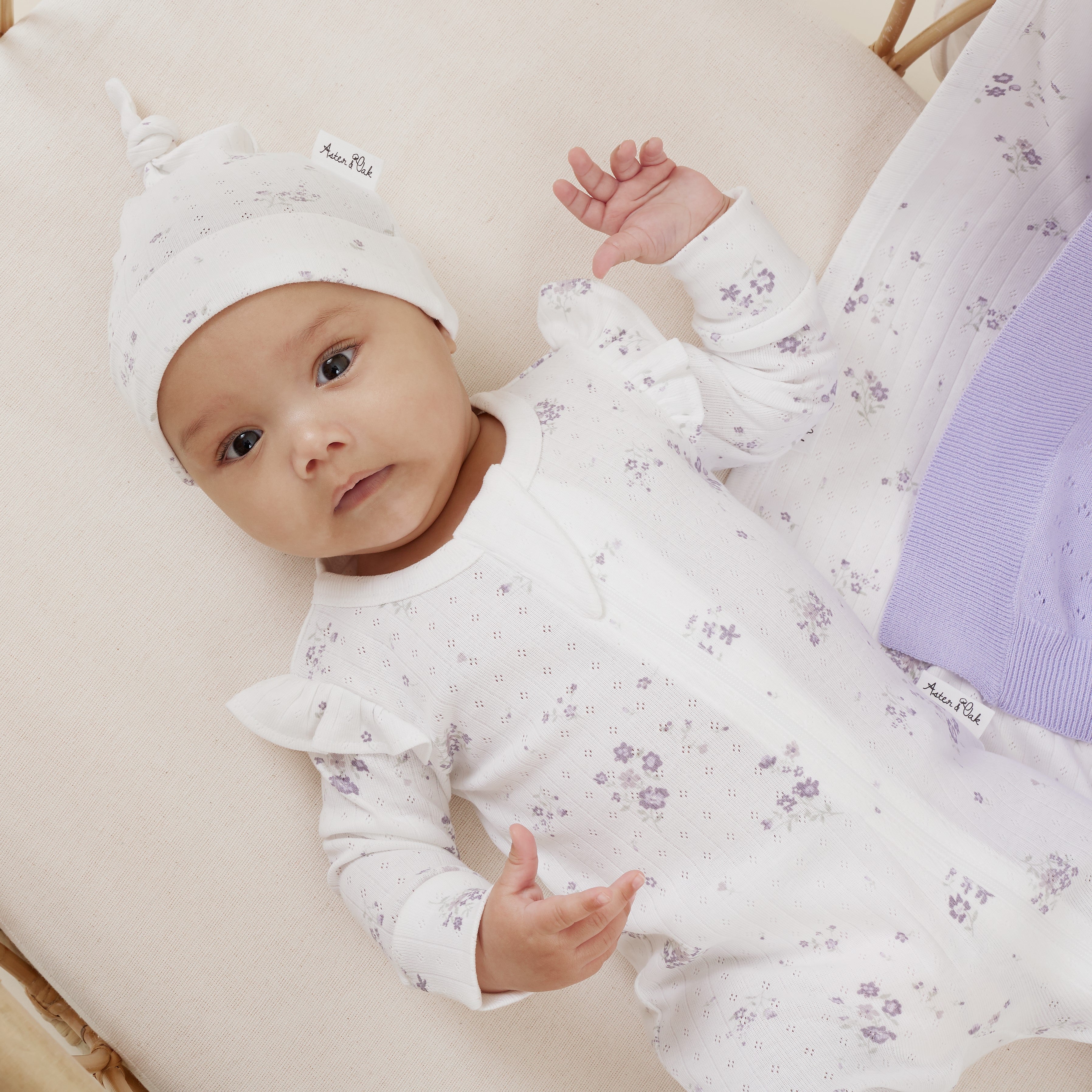 Made with 100% GOTS certified organic cotton, this hand illustrated grace floral hat features an adjustable knot.