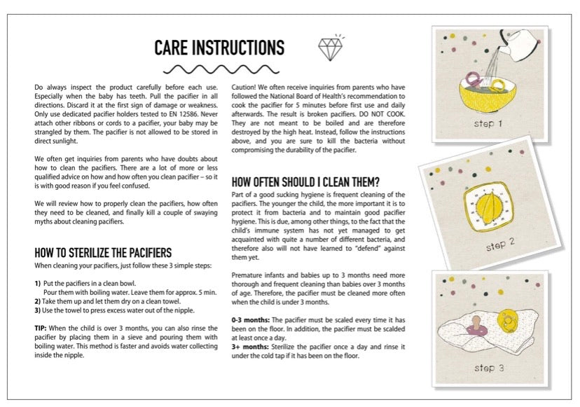 Material/size: Natural rubber latex size 1, 2 and 3. Size 1 & 2 are suitable from birth. Trend: Inspired by baby fashion of the season – always in the most popular colours to match the outfit.