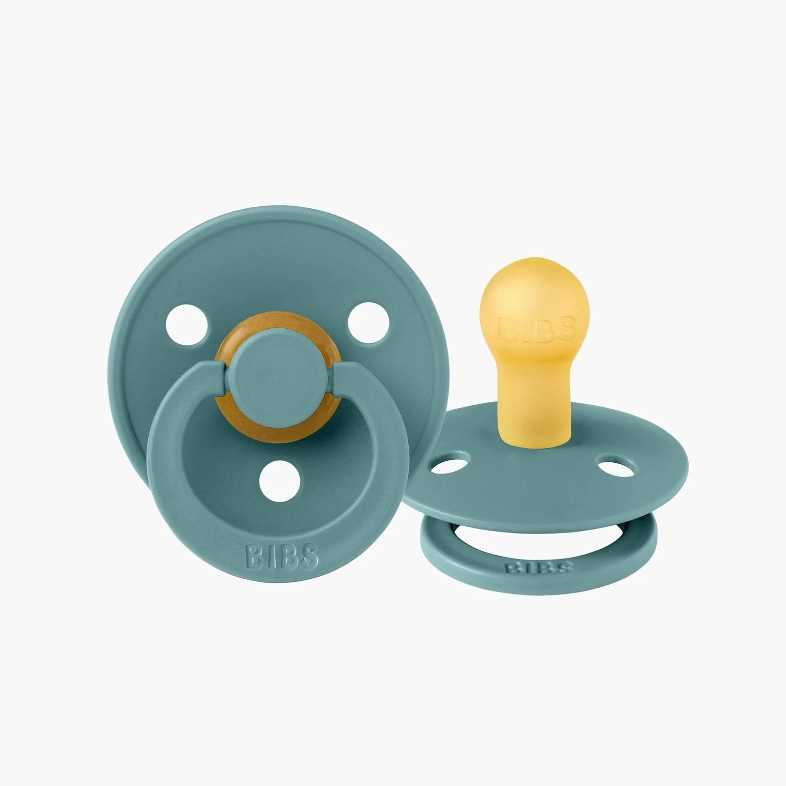 BIBS Colour pacifier is the original BIBS pacifier and has been on the market for over 40 years. It has the signature round BIBS shield with three vent holes and round BIBS engraved handle ring.
