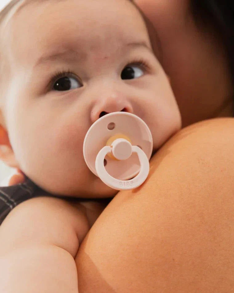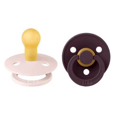 BIBS Colour pacifier is the original BIBS pacifier and has been on the market for over 40 years. It has the signature round BIBS shield with three vent holes and round BIBS engraved handle ring.