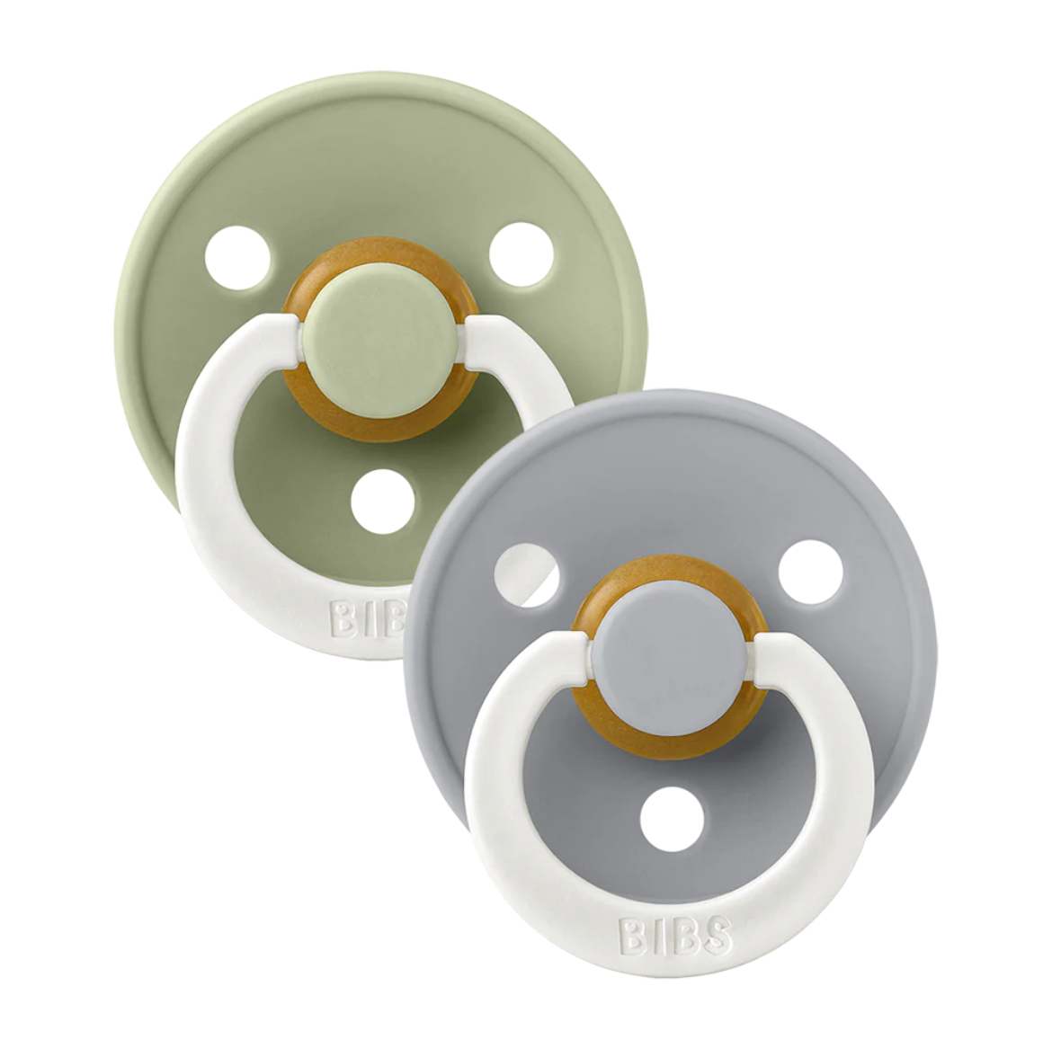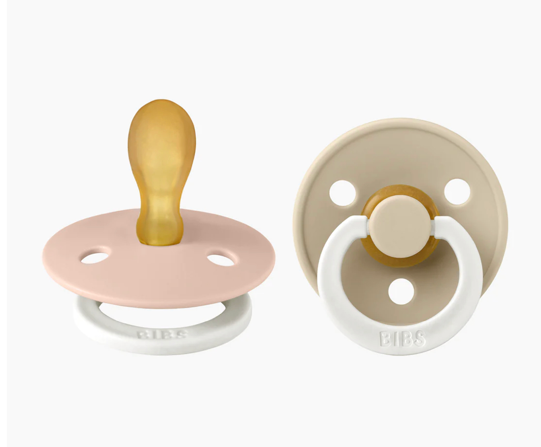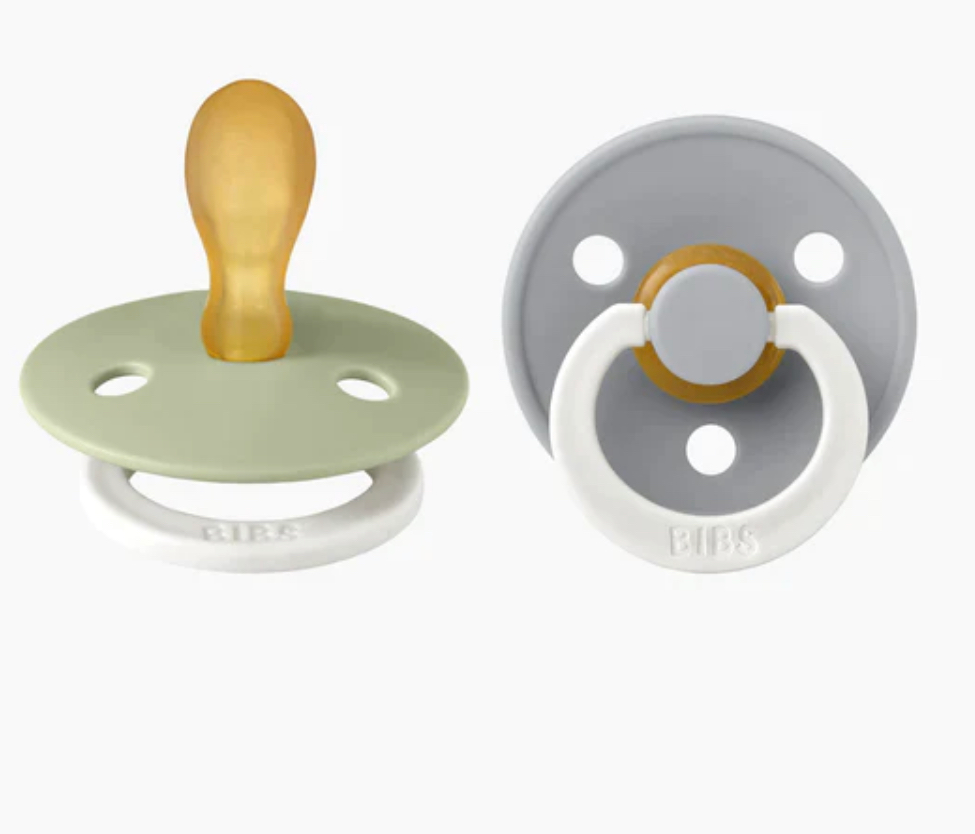 BIBS Colour pacifier is the original BIBS pacifier and has been on the market for over 40 years. It has the signature round BIBS shield with three vent holes and round BIBS engraved handle ring.
