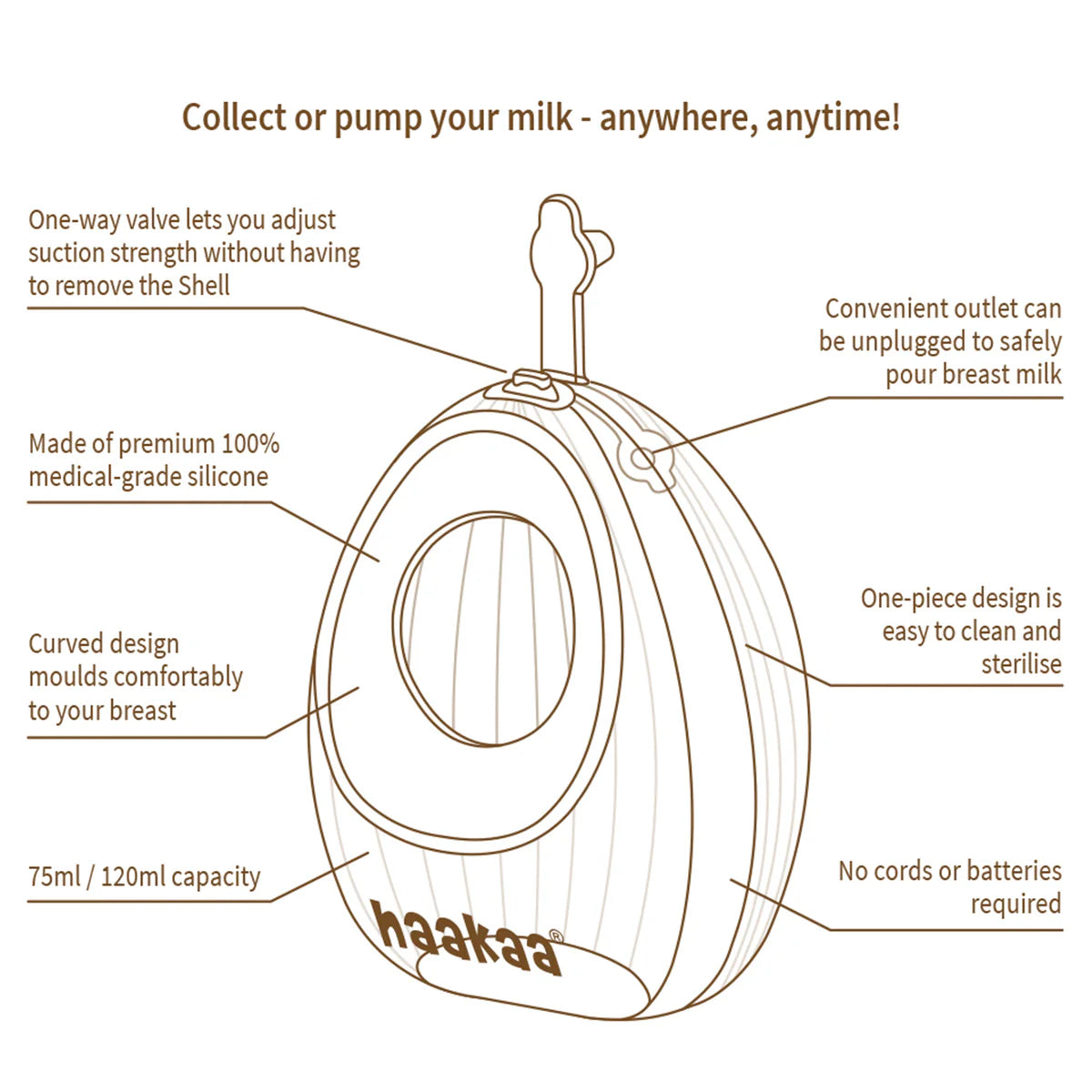 Pump or collect? With the Haakaa Shell Wearable Silicone Pump, you don’t have to choose. This clever little pump combines the best of both worlds. Our original Haakaa Silicone Pump and Ladybug Milk Collector, in one discreet, hands-free design.