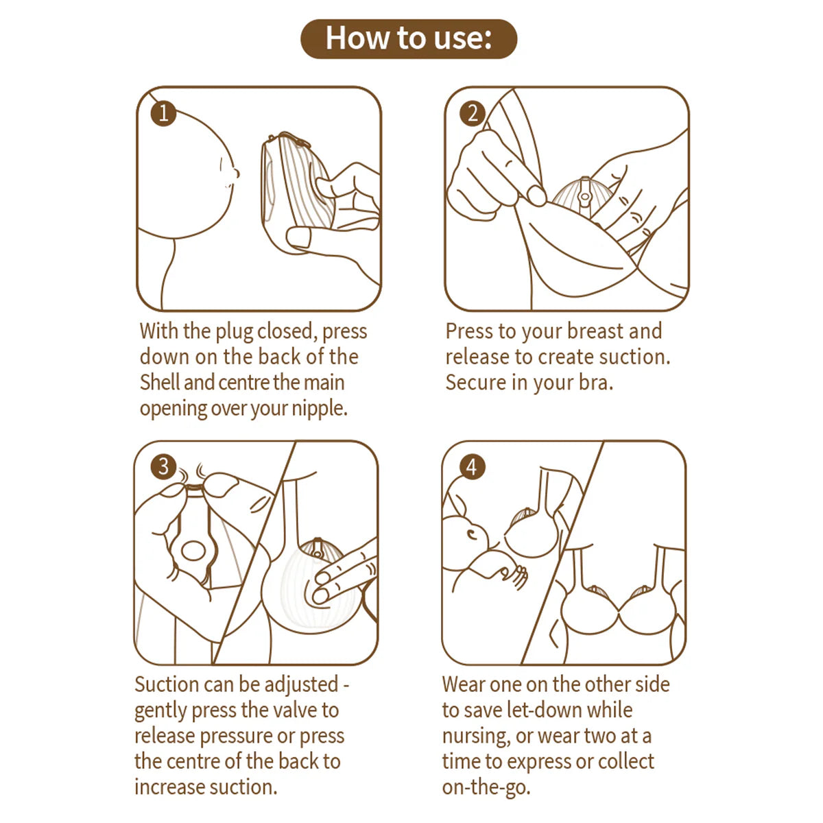Wear one of the other side to save let down while nursing, or wear two at a time to express or collect on the go.
