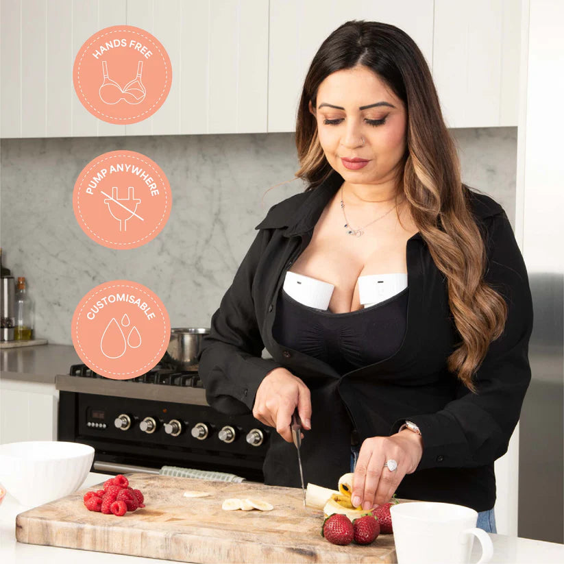 The ARIA™ is an electric breast pump designed to fit inside your nursing bra to give you a hands free pumping experience- no more cords or tubes!