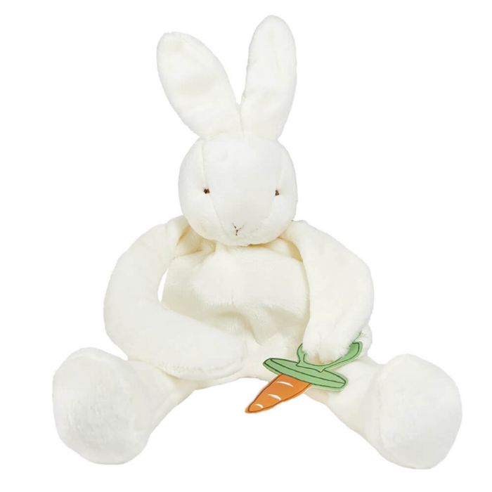 This White Bunny Silly Buddy is sure to soothe baby's troubles away with its big floppy ears, delicately embroidered facial details and super-soft velour fabric. A handy velcro loop on White Bunny's paw will keep baby's dummy secure, whilst a gentle internal rattle will captivate and delight your little one's ears. Perfect for home or on-the-go, this super-cute companion attaches easily to a cot, pram or car seat for maximum play and comfort value