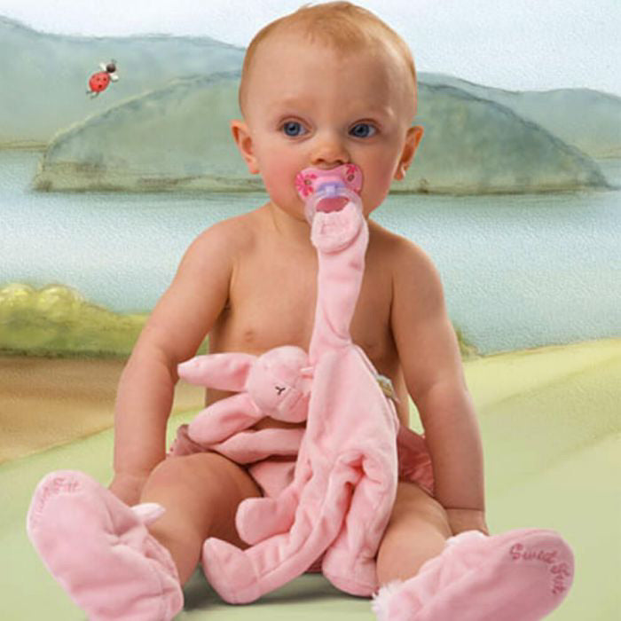 Blossom Bunny Silly Buddy is sure to soothe baby's troubles away with its big floppy ears, delicately embroidered facial details and super-soft velour fabric. A handy velcro loop on Blossom's paw will keep baby's dummy secure, whilst a gentle internal rattle will captivate and delight your little one's ears. Perfect for home or on-the-go, this super-cute companion attaches easily to a cot, pram or car seat for maximum play and comfort value.