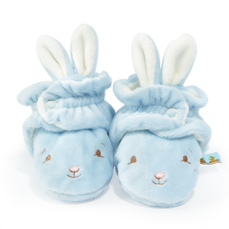 Hoppy Feet Slippers come in a light blue colour with an embroidered bunny face and perky bunny ears. You've never seen baby slippers so delightfully adorable. Keep babies feet snuggly and warm all while keeping baby happy, entertained and stylish too!