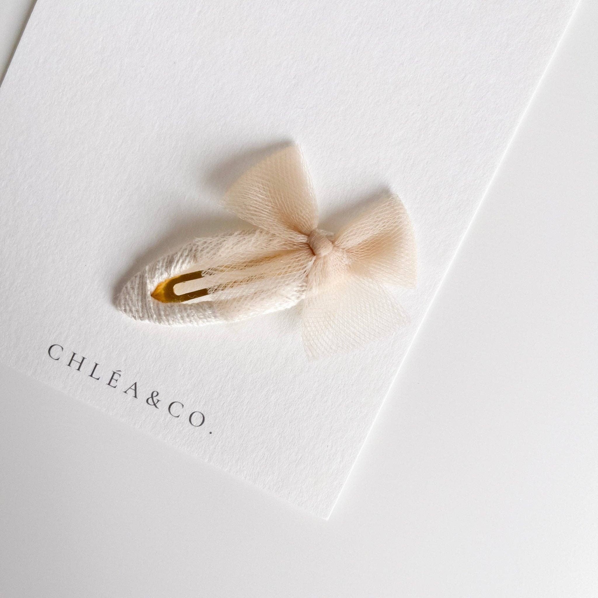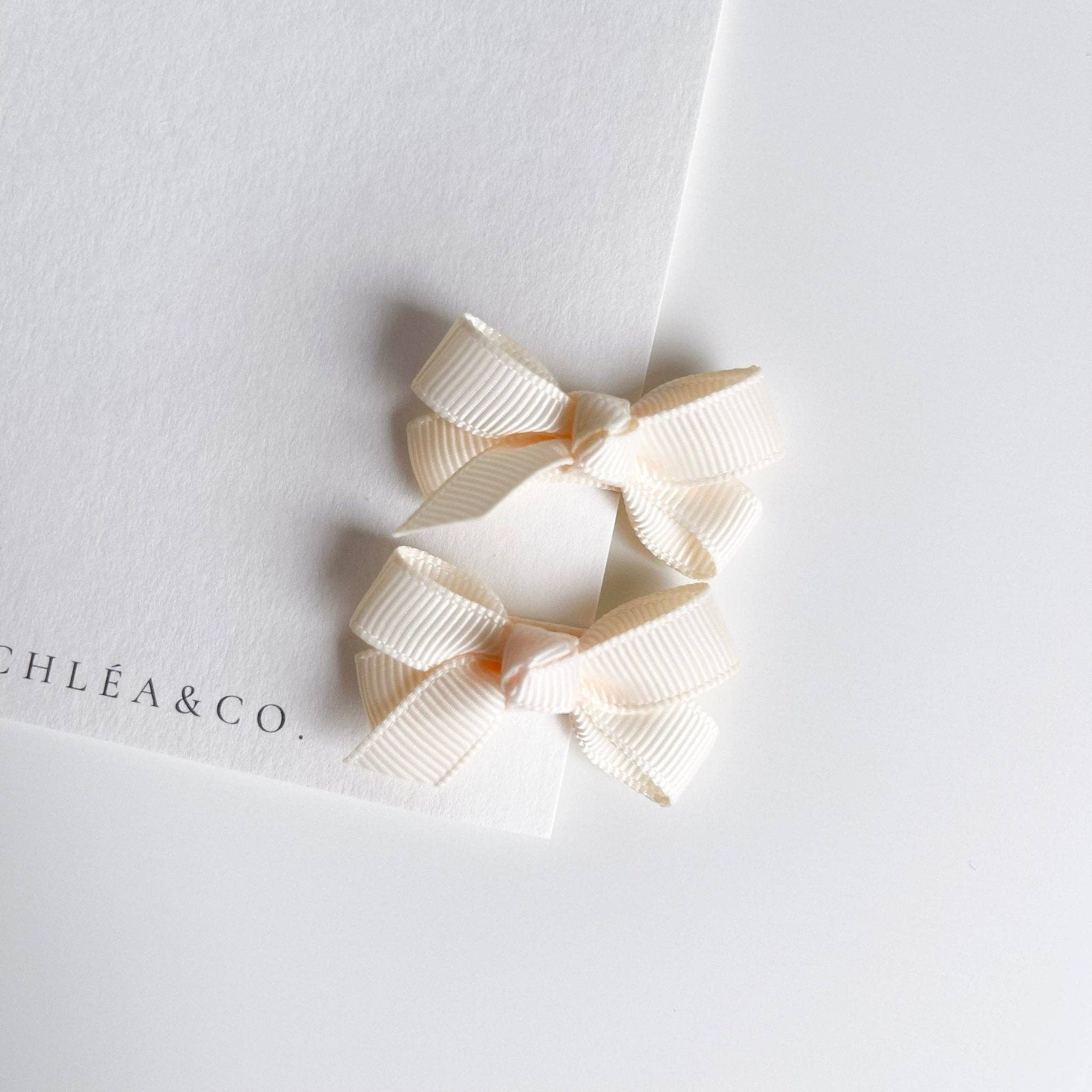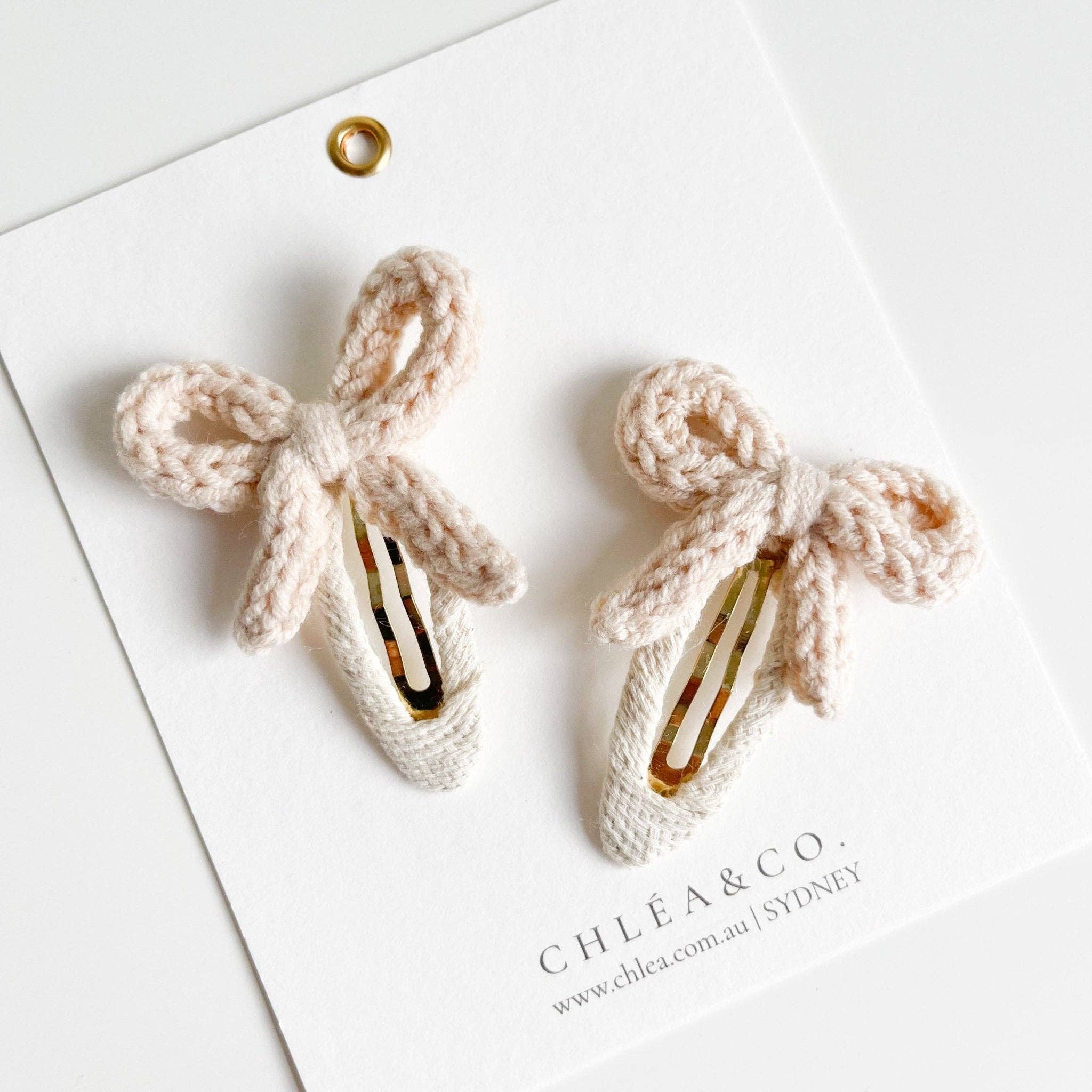 Set of 2 Liana Crochet Bow Clips: Oatmeal