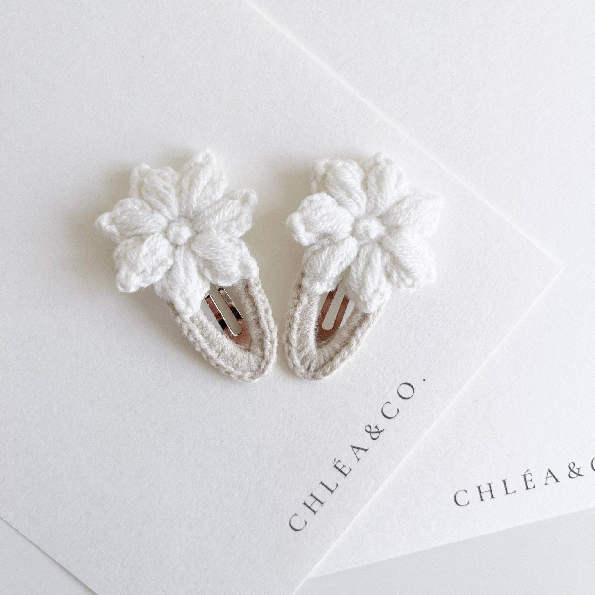 Spring Pastel Bloom Crochet Clip Set: Peach Meringue