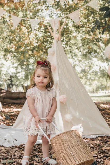 Also comes with matching simple cotton bloomers in the same fabric ( no Lace )