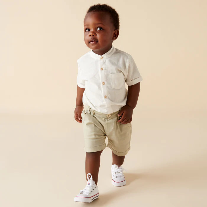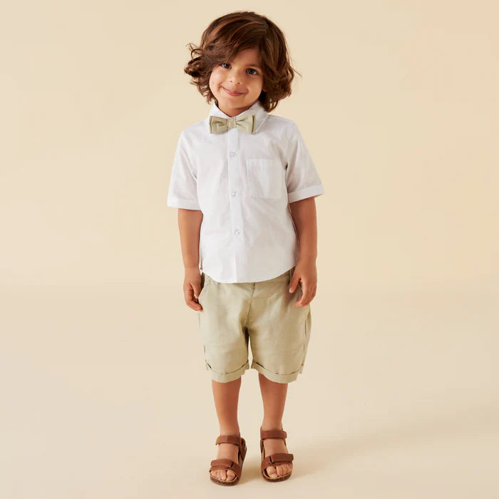 The Finley Linen Shorts features an adjustable waist, slant front pockets, a false fly, buttons and a belt loop. Pair with our range of formal shirts, suspenders and bow ties, for the perfect boys' special occasion outfit.