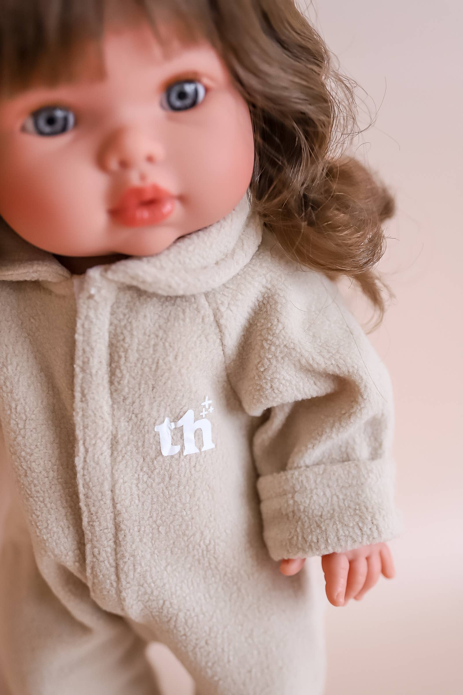 Dress up dolls in cozy comfort with our Doll Onesie Suit! Made from soft, fluffy cotton, this onesie features an easy-to-use Velcro opening, perfect for little hands. It also boasts a cute embroidered Tiny Harlow logo—please note that while the photos show heat-pressed logos, the actual products have the logo beautifully embroidered. Available in four adorable colors—purple, baby pink, baby blue, and beige—each color comes in a pack of 4 units. Presented in a cute gift box, it's perfect for store display and gifting. Fits 32-38cm dolls, including Miniland, Minikane, Paula Reina, and Mini Colletto. Ideal for hassle-free dressing and endless playtime fun!