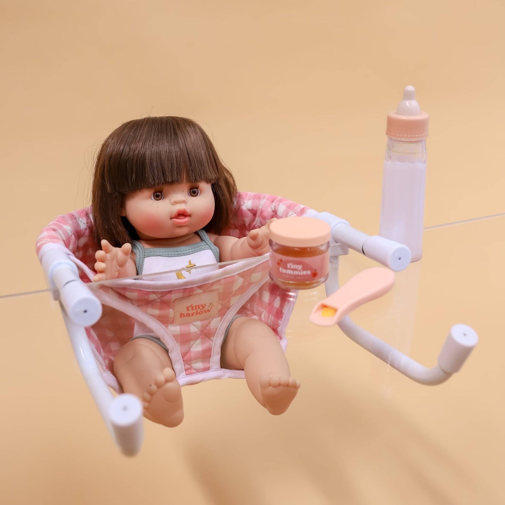 Tiny Harlow Doll's Portable Feeding Chair Seat is the perfect way to make mealtimes more fun and engaging for your toddler. They can now eat their meal with their dolly, which will help them develop their imagination and social skills.