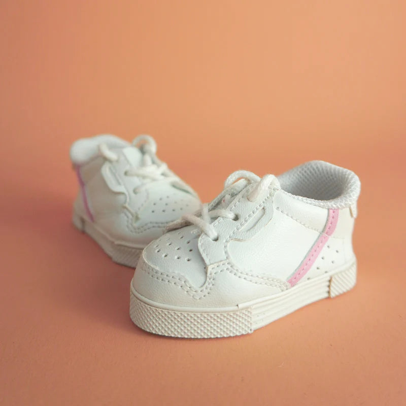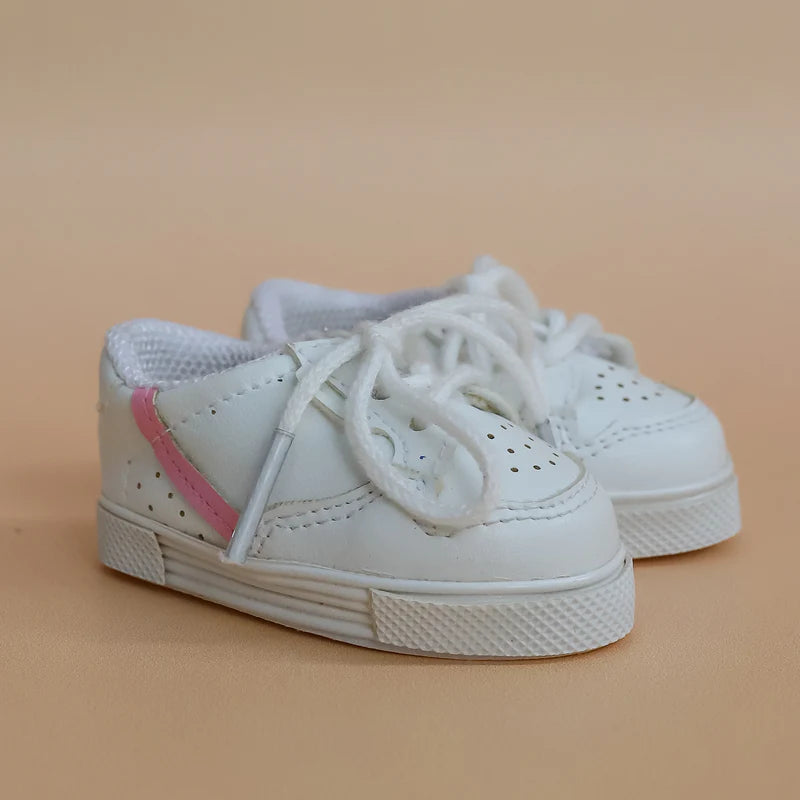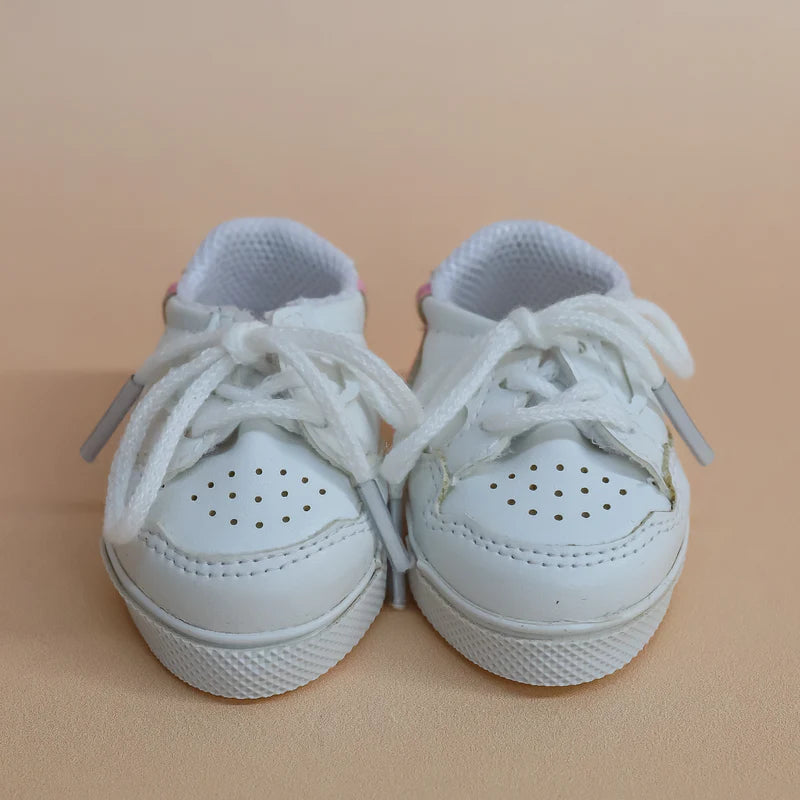PLEASE NOTE: The lace holes in the sneakers are very delicate and the laces come pre-tied to ensure the laces do not tear through the hole. The sneakers should slip on and off your dolls feet without needing to be undone.