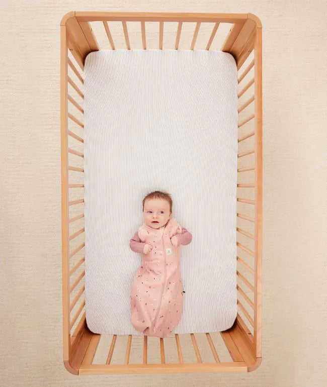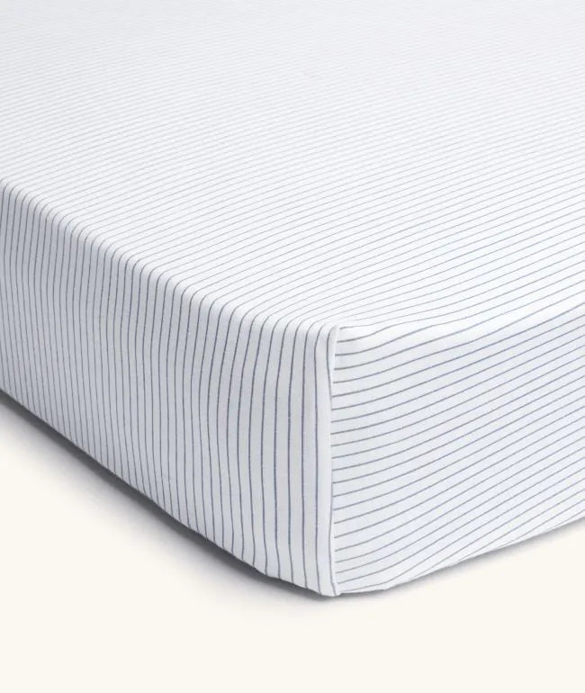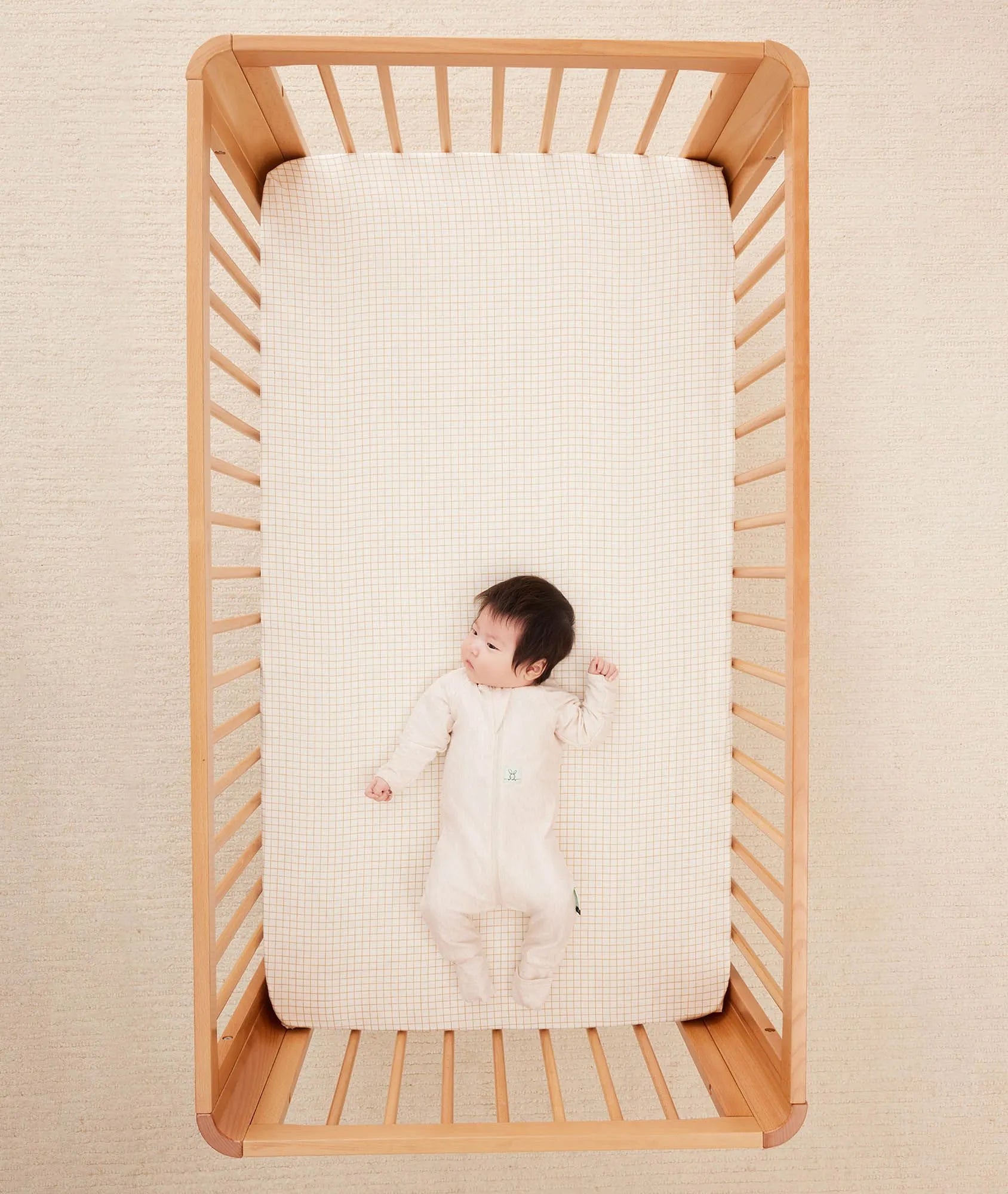 Made with GOTS-certified organic cotton and elastane, the sheet will stretch to provide a firm fit over your mattress. We've given the sheet an added safety strap on the underside to help hold the sheet in place. This added safety feature means your baby cannot pull the mattress off the bed and over their face, giving parents peace of mind for safe sleep. The firm and thick elastic edges help hold the sheet firmly against the mattress, and prevent bunching. The waterproof backing will prevent any accidents and spills from leaking into your mattress, and is noise-free, giving you a more peaceful sleep. The waterproof backing can also help to prevent CO2 rebreathing for a healthier and safer sleep.