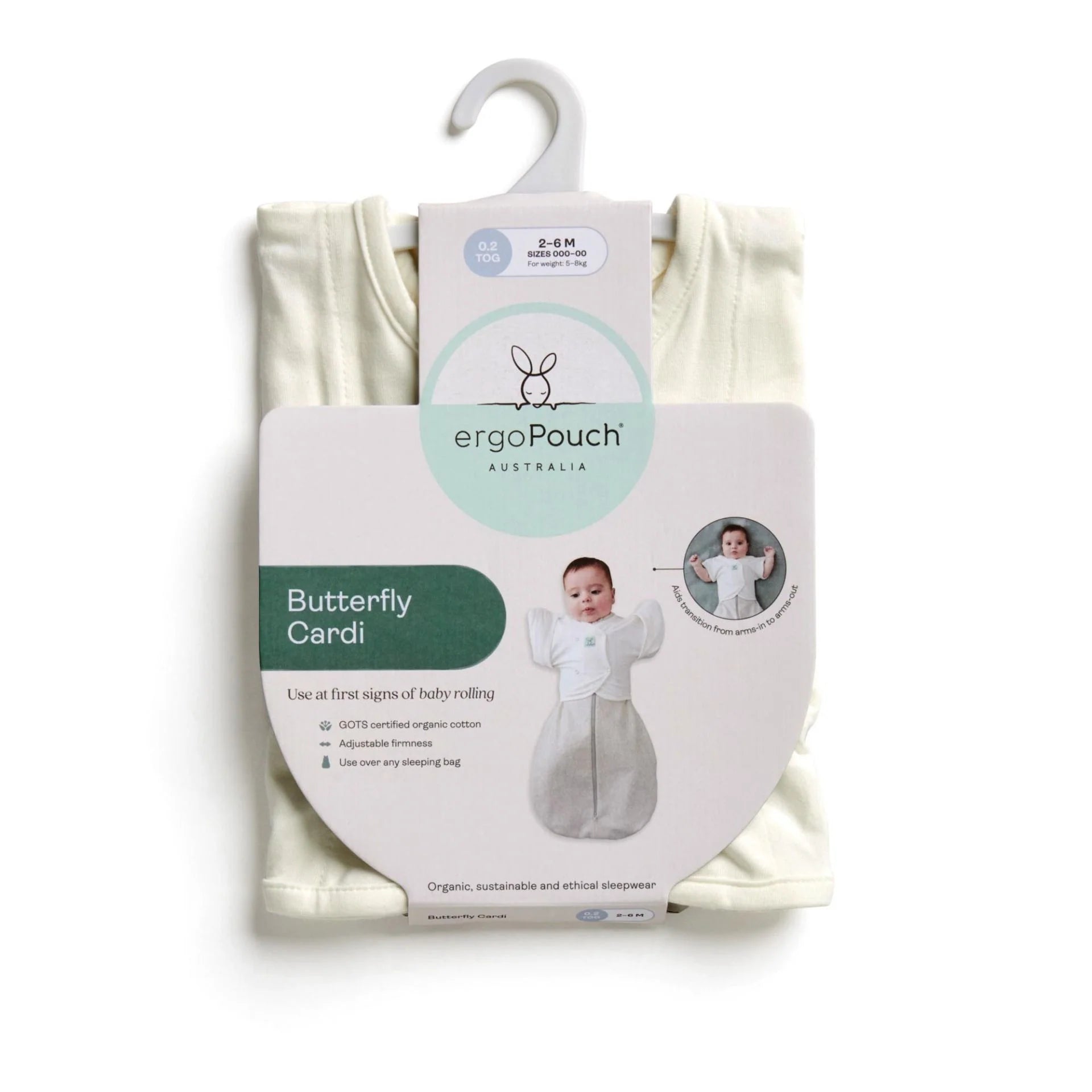The Butterfly Cardi is made from Global Organic Textile Standard (GOTS) certified organic cotton that is non-toxic and gentle on irritable skin. All ergoPouch fabrics are dyed with non-toxic water based dyes. The Hip Harness Jersey Sleeping Bag is reviewed by the Eczema Association of Australasia (EAA) as a skin-friendly product.