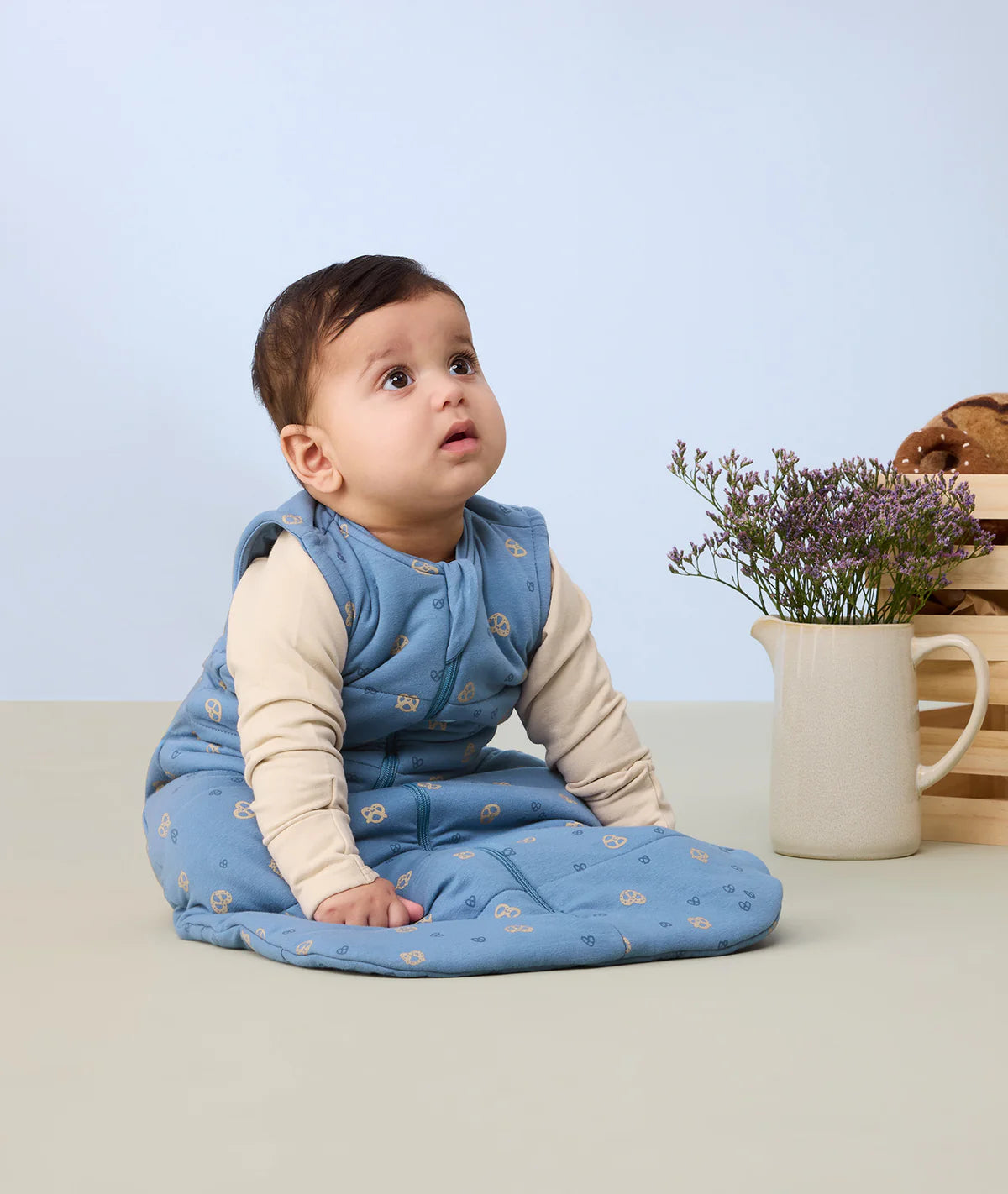The 2.5 TOG Jersey Sleeping Bag is perfect for keeping a child warm overnight in rooms 17-23°C / 63-73°F. The TOG rating means that there is no need for additional blankets in the cot when using this product, making it a safe-sleep option. Parents can be rest assured that the breathable organic, natural fibres will help regulate their child’s temperature and prevent overheating. Parents can follow the FREE room thermometer and What to Wear guide provided with the product, to layer appropriately underneath to keep their child warm. We recommend pairing this pouch with one of our TOG-rated Layers or Bodywear underneath, and Arm Warmers can be added on top of the pouch for extra warmth (all sold separately).