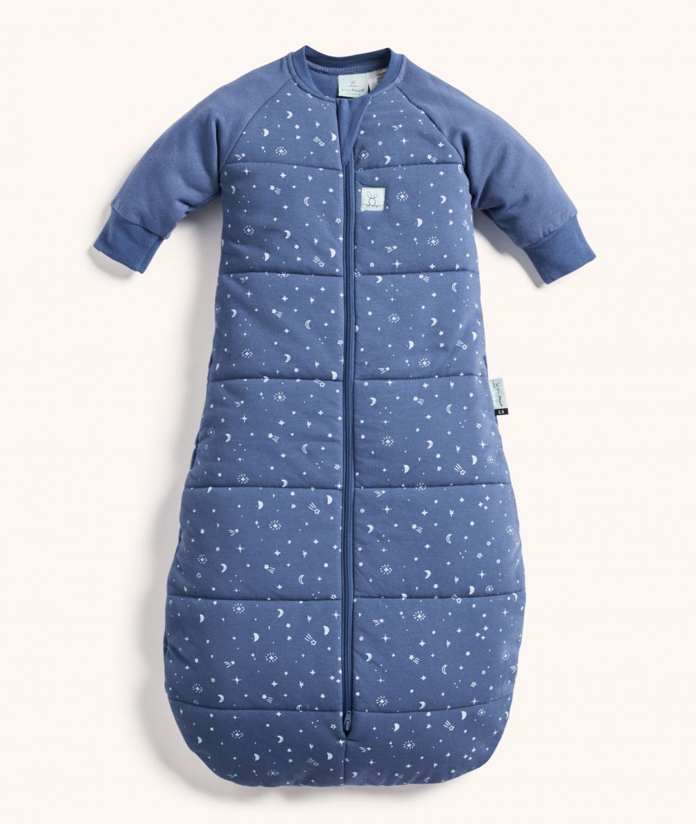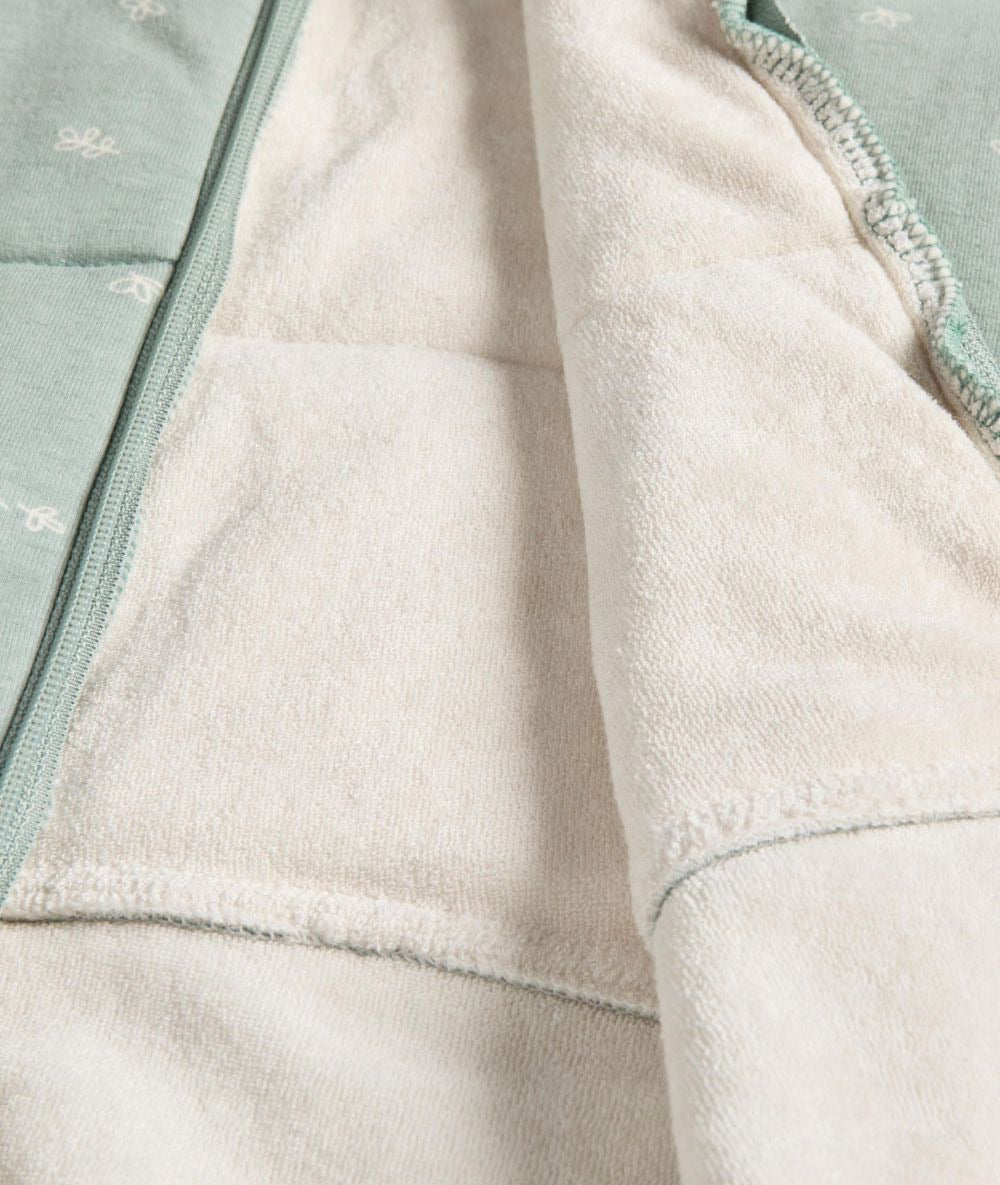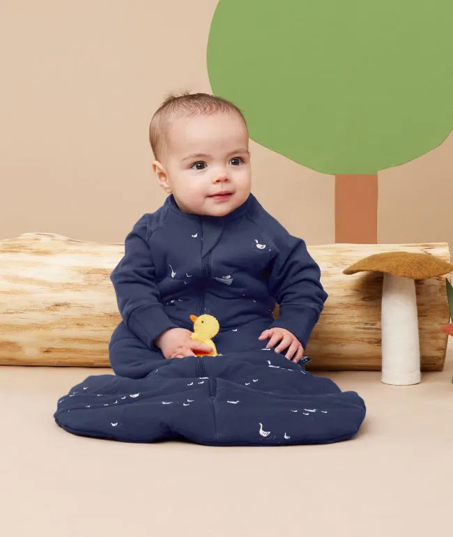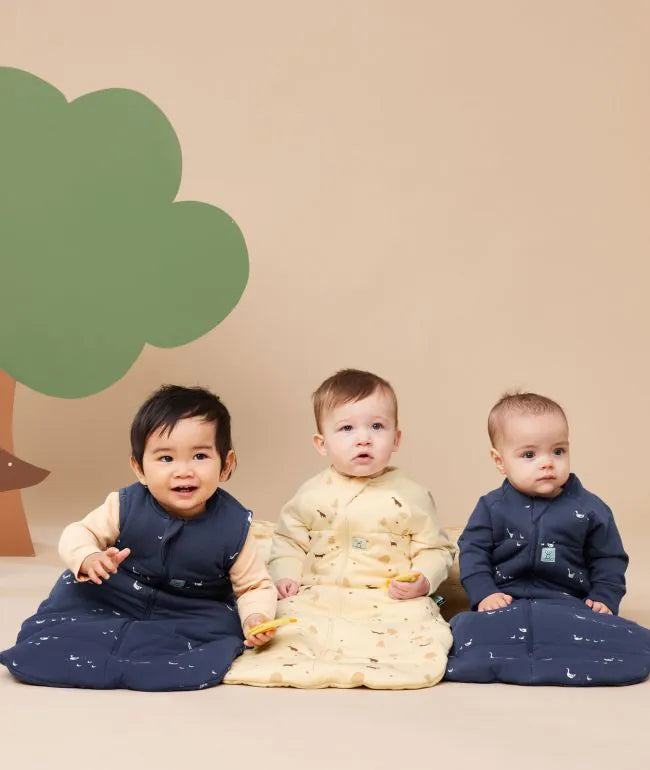 The 3.5 TOG Jersey Sleeping Bag is perfect for keeping a child warm overnight in rooms 14-21°C / 57-70°F. The sleeves on the Jersey Bag are rated 1.0 TOG and provide extra warmth on cooler nights. The TOG rating means that there is no need for additional blankets in the cot when using this product, making it a safe-sleep option. Parents can be rest assured that the breathable organic, natural fibres will help regulate their child’s temperature and prevent overheating. Parents can follow the FREE room thermometer and What to Wear guide provided with the product, to layer appropriately underneath to keep their child warm. We recommend pairing this pouch with one of our TOG-rated Layers or Bodywear underneath (sold separately).