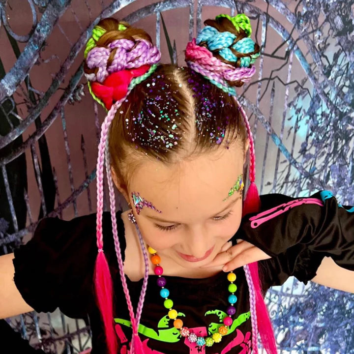 Directions- Apply to hair, face or body with fingertip or a make up brush, the more layers you apply the heavier the glitter looks! We love gel based glitters for the hair to create some cool Festival or holiday braid looks.