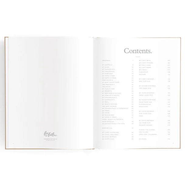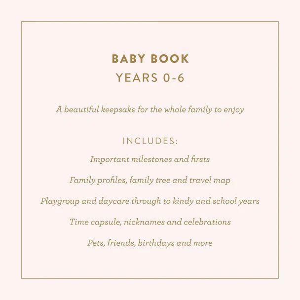 A beautiful keepsake for the whole family to enjoy in a blank cream linen box with small Fox & Fallow logo on the base. Includes: important milestones and firsts, family profiles, family tree and travel map, playgroup and daycare through to kindy and school years, time capsule, nicknames and celebrations, pets, friends, birthdays and more.