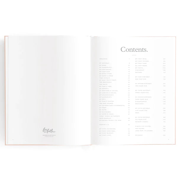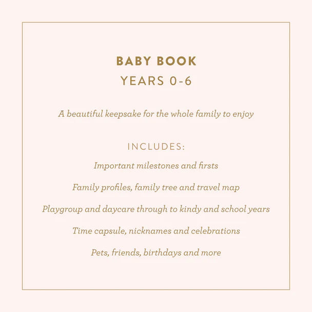 A beautiful keepsake for the whole family to enjoy in a blank cream linen box with small Fox & Fallow logo on the base.Includes: important milestones and firsts, family profiles, family tree and travel map, playgroup and daycare through to kindy and school years, time capsule, nicknames and celebrations, pets, friends, birthdays and more.