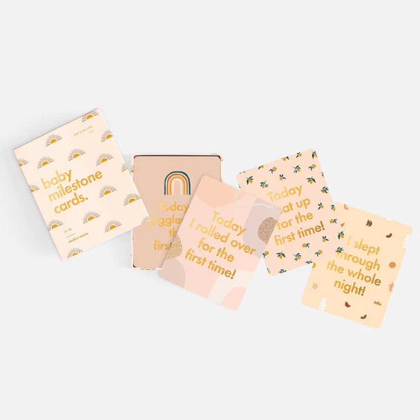 Includes 34 cards with rounded corners safe for little hands, a special card for your birth announcement, plus all the important milestones from one day old to one year old. All in gender neutral colours with gold foil on every card.