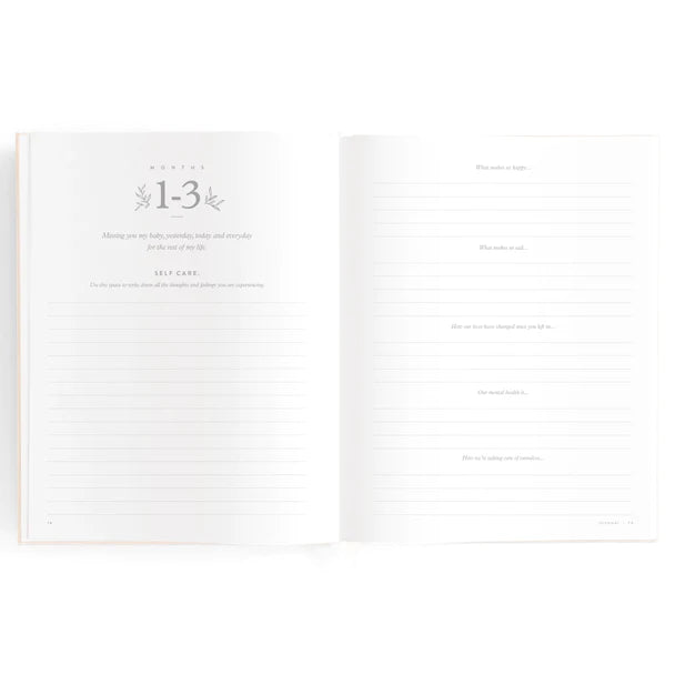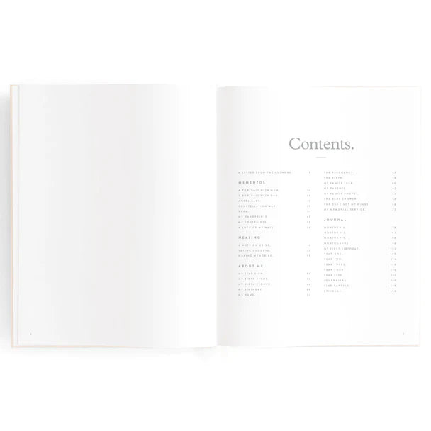 This journal has four parts - Mementos, Healing, About Me and Journal. It's designed to honour their little one's memory and also be guided through their grief. Also available in a beautiful keepsake box where you can place personal items such as a lock of hair, photos, hospital tags and cot cards or pressed flowers.
