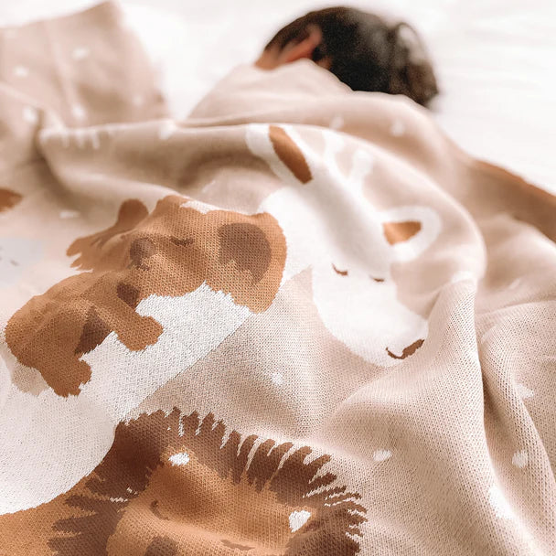 Our luxe knitted blankets are super soft and easy to care for (hello machine washable and tumble dry!) But we do recommend washing them separately in cold water with a mild detergent and only tumble dry on low heat. Please avoid washing them with dark coloured items or any items that may snag the fabric (i.e. velcro, zips or hooks) - a wash bag is also recommended. Simply wash and dry flat in shade. Use cool iron. Do not dry clean, bleach, soak or wring. Keep away from away from heat or flame.