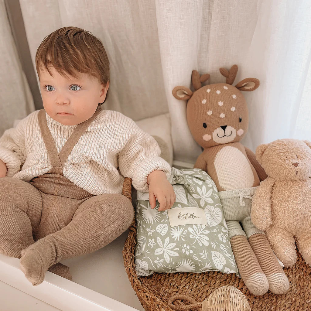 Imagery shown is for photography purposes only. Please observe safe sleeping guidelines and ensure you do not cover your baby's head while sleeping and that blankets are tucked in securely at the ends and edges of cots and bassinets to ensure they do not cover your baby's face. Please also ensure no toys, pillows or cot bumpers are left in your baby's cot while sleeping.